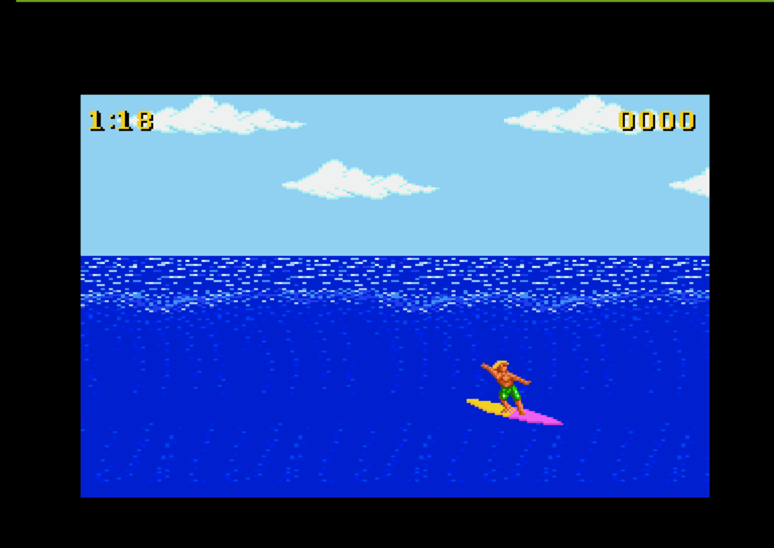 Four international events of death-defying skill and confidence. Cliff Jumping, Ski Slalom, BMX Racing and Surfing, published by the masters of computer sports...EPYX!