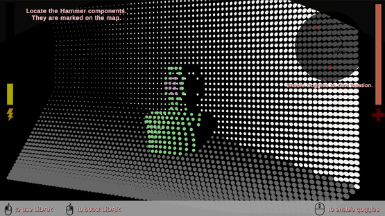 Sightline is an action-adventure that uses LiDAR goggles to see the world as a shifting point cloud, an approximation that keeps you moving while hiding finer details. Navigate a hostile planet, gather weapon parts, and face deadly enemies to recover a stolen relic and take down the Orven Empire.