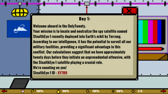 Survive 20 tense days aboard a failing spaceship while hunting down an enemy satellite. Every day brings new malfunctions, random story events, and difficult choices. Will you find the target before it's too late?