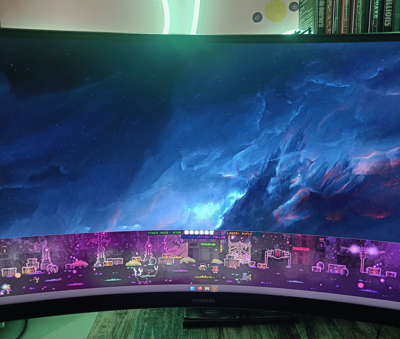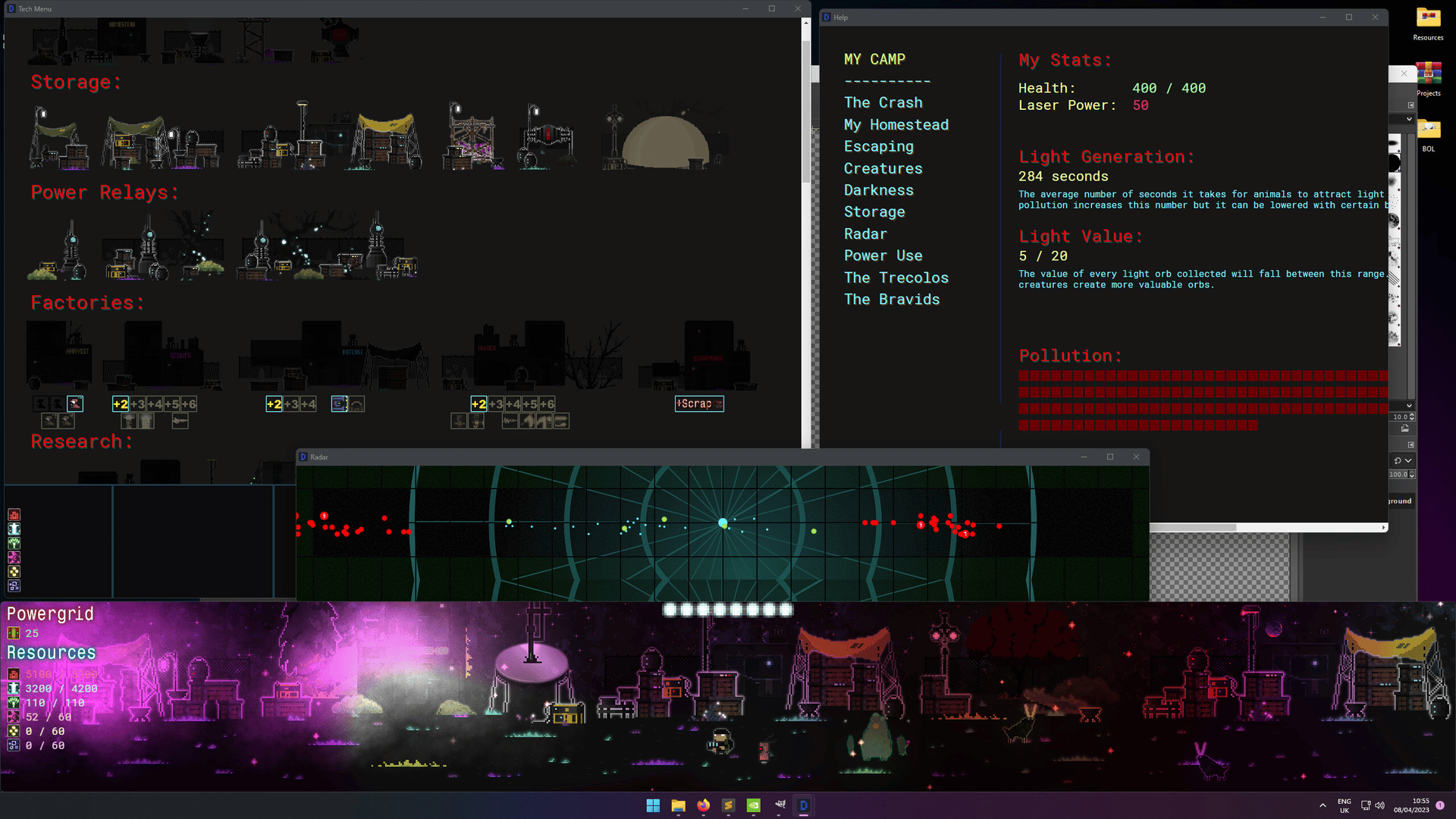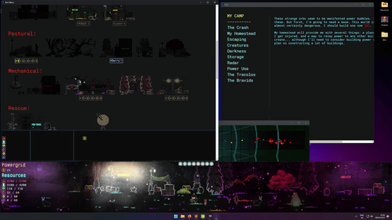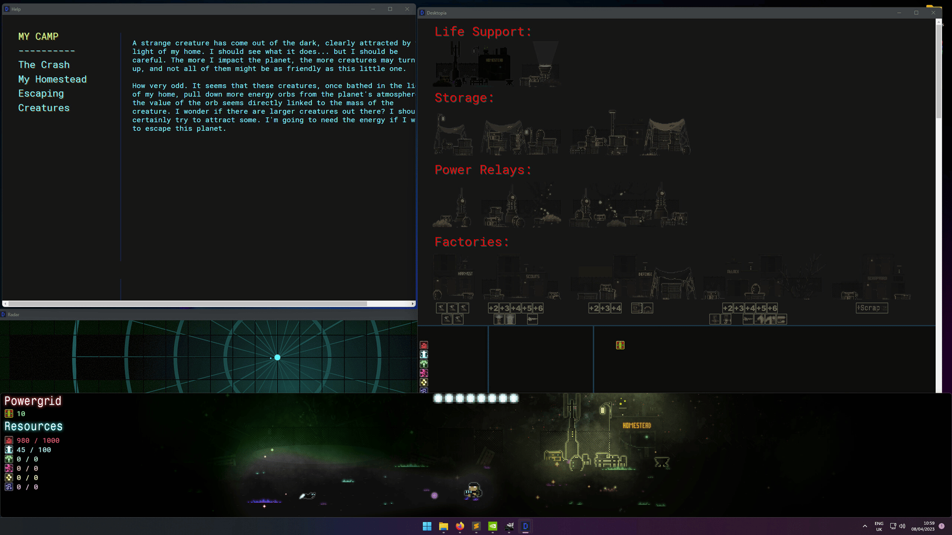 'dEskape' is a base-building game which sits across the bottom of your desktop allowing you to work, browse, or watch something else while you play. It's idle when you like and active when you want.