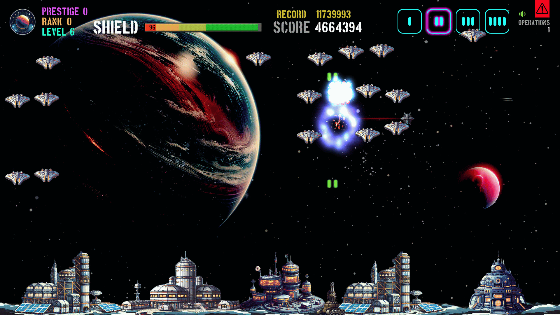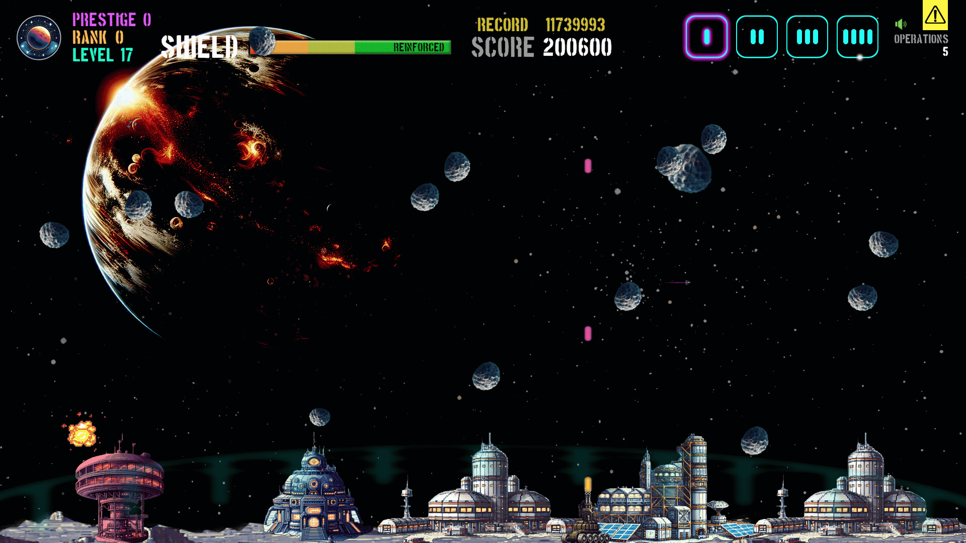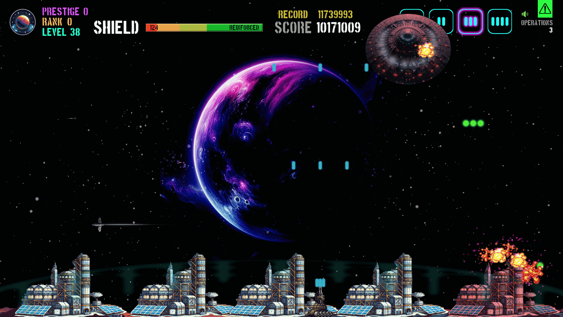 Nick Duster, better known as "IcoNick", a war veteran of the intergalactic congregation, who has been brought back to defend the planets from hostile alliances. Control your turret, with high firepower. 3 game modes: Contracts, Asteroids and Invasion. Full of action. Hundreds of galaxies awaits. Go!