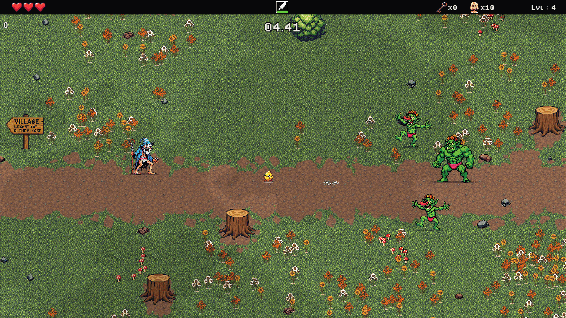 An alcoholic wizard with no spells, only rocks, must save his village from depraved monster hordes. Tactical action, chaotic weapon combos, and dark humor collide in this unique twist on the Vampire Survivors formula!