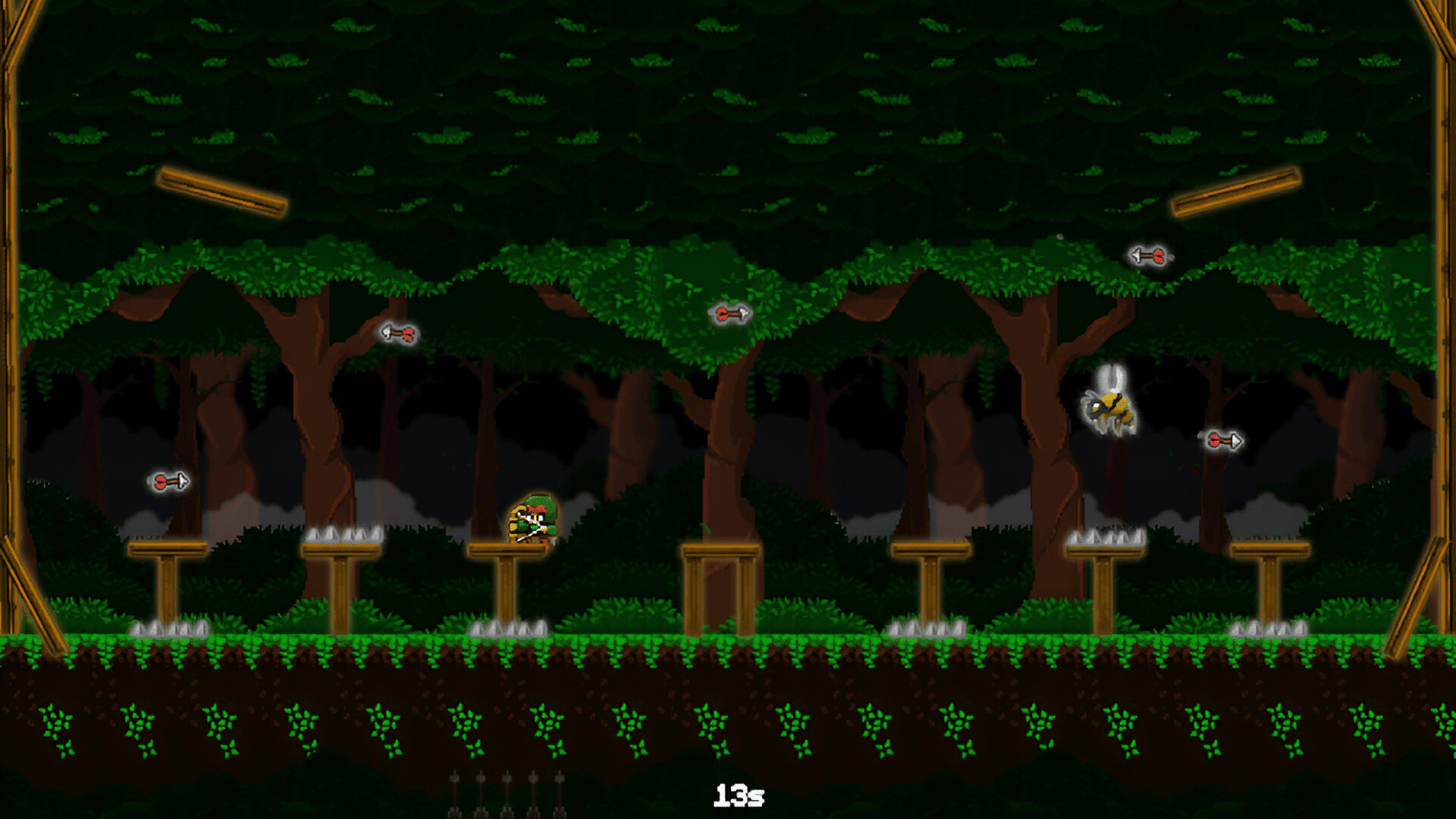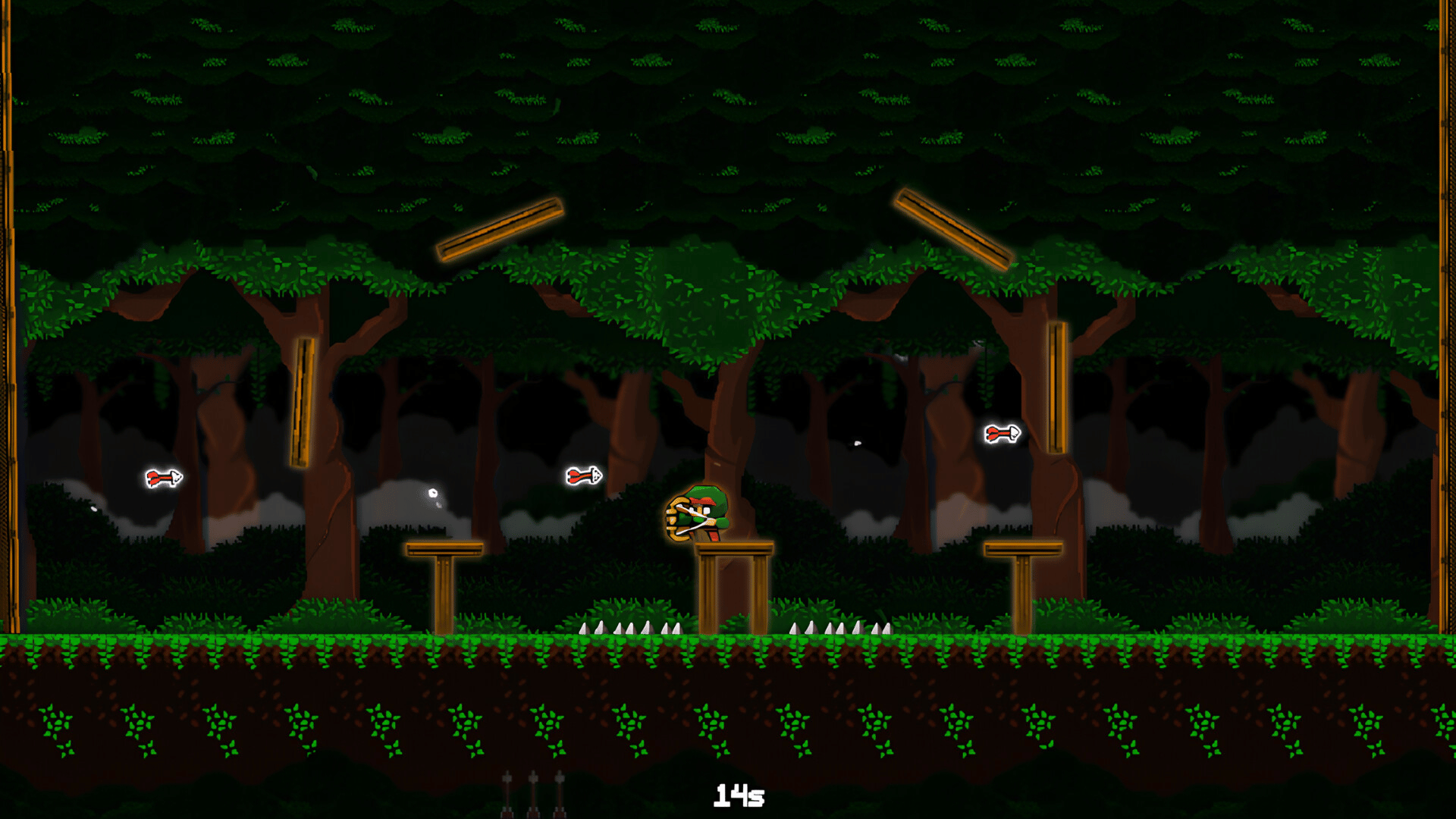 Dodge and shoot to survive 15 seconds! Master 40 levels of arrow chaos in this fast-paced pixel art platformer! Dive into Arrow Survival: 15 Seconds, a thrilling 2D pixel art platformer where every second counts! As a skilled archer, your mission is to survive 15 seconds per level by dodging deadly hazards and strategically firing arrows. Each of the 40 unique levels introduces new challenges, from bouncing platforms that redirect your arrows to treacherous spikes and evolving mechanics that keep you on your toes. Plan your shots carefully! The angle and direction of your arrows can make or break your survival, as they ricochet unpredictably or trigger new obstacles. Test your reflexes, sharpen your strategy and reach the final level. Can you survive the last 15 seconds of each level?
