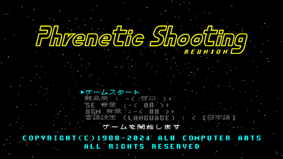 A playable shooting game "PHRENETIC SHOOTING REUNION" + All future updates/bug fixes. Phrenetic Shooting is a retro tasted shooting game. This game provides an exciting experience for retro 2D shooting game funs.