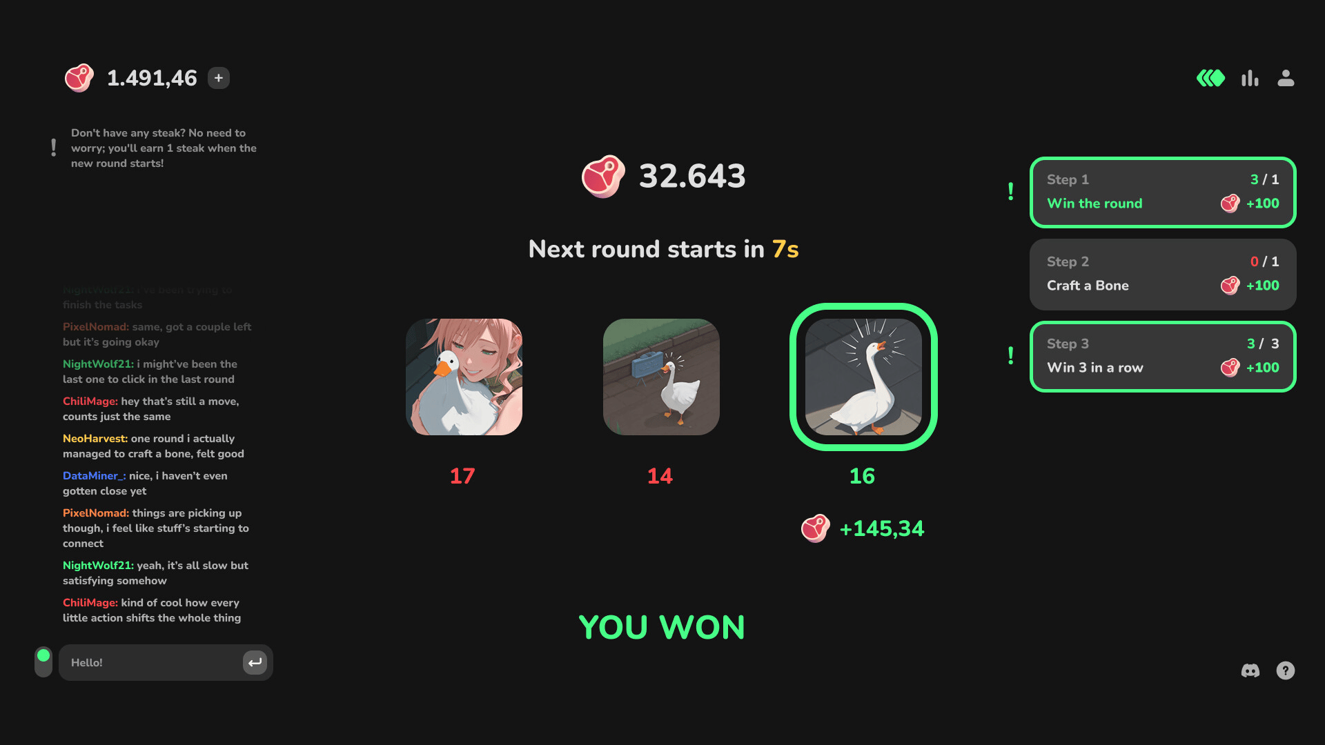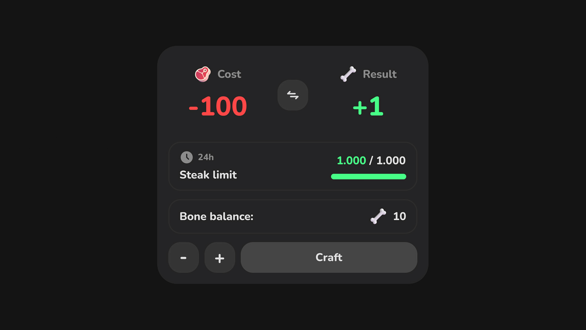 Each click and contribution shifts the balance. Accumulate 100 Steaks to craft one of the limited Bone items; each Bone is tradable and fuels an endless cycle of strategy and scarcity. Are you ready to master the MID and dominate the Bone market?