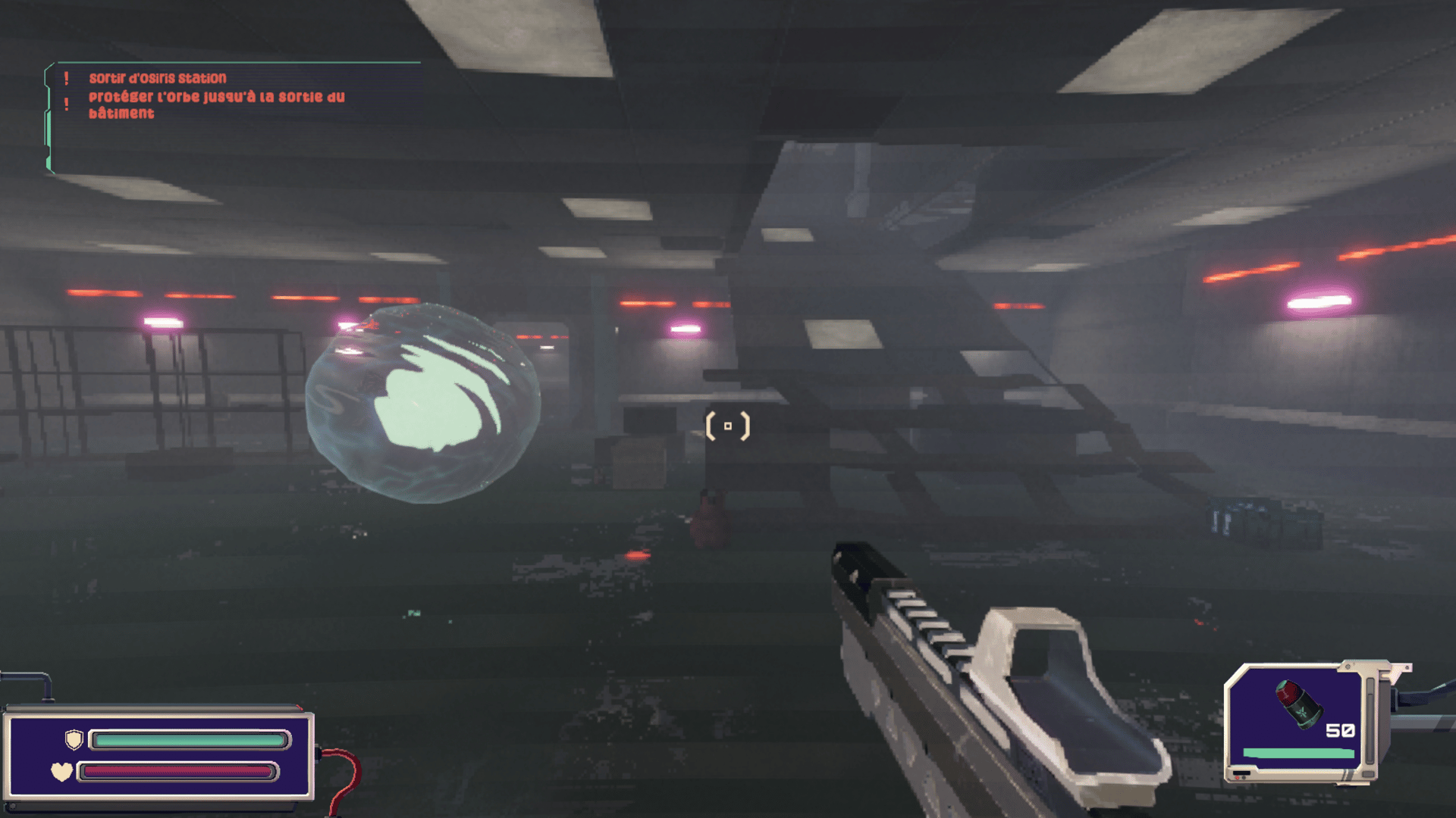 Last Leave is a FPS mixed with towed defense mechanics. Protect the Orb of Memories moving on its path to find a safer zone, by preventing enemies to destroy it, then by buying towers to secure the next road. Explore 4 levels in about an hour, in a retro pixelated and nostalgic environment, with the dark and energic metal music from "le Rat de Mars".