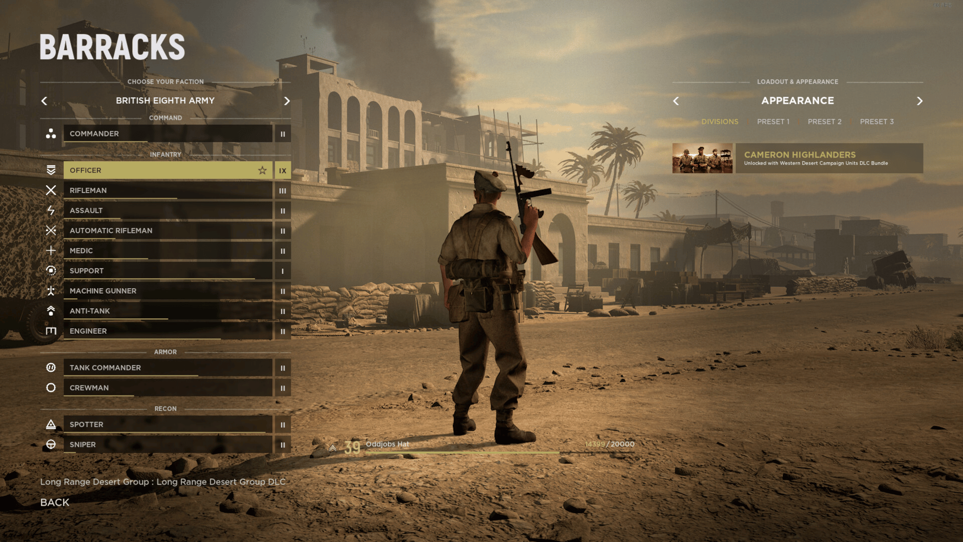 Add the Western Desert Campaign DLC to your collection and be a part of the Battle of Tobruk. The Western Desert Campaign DLC contains: - 6 New Uniforms: - 1x British 8th Infantry 1x British 8th Armour 1x British 8th Commander 1x DAK Infantry 1x DAK Commander 1x DAK Armour 2 New Head Gear: - 1x British 8th Beret 1x DAK Helmet 2 New Heads: - 1x British 8th 1x DAK