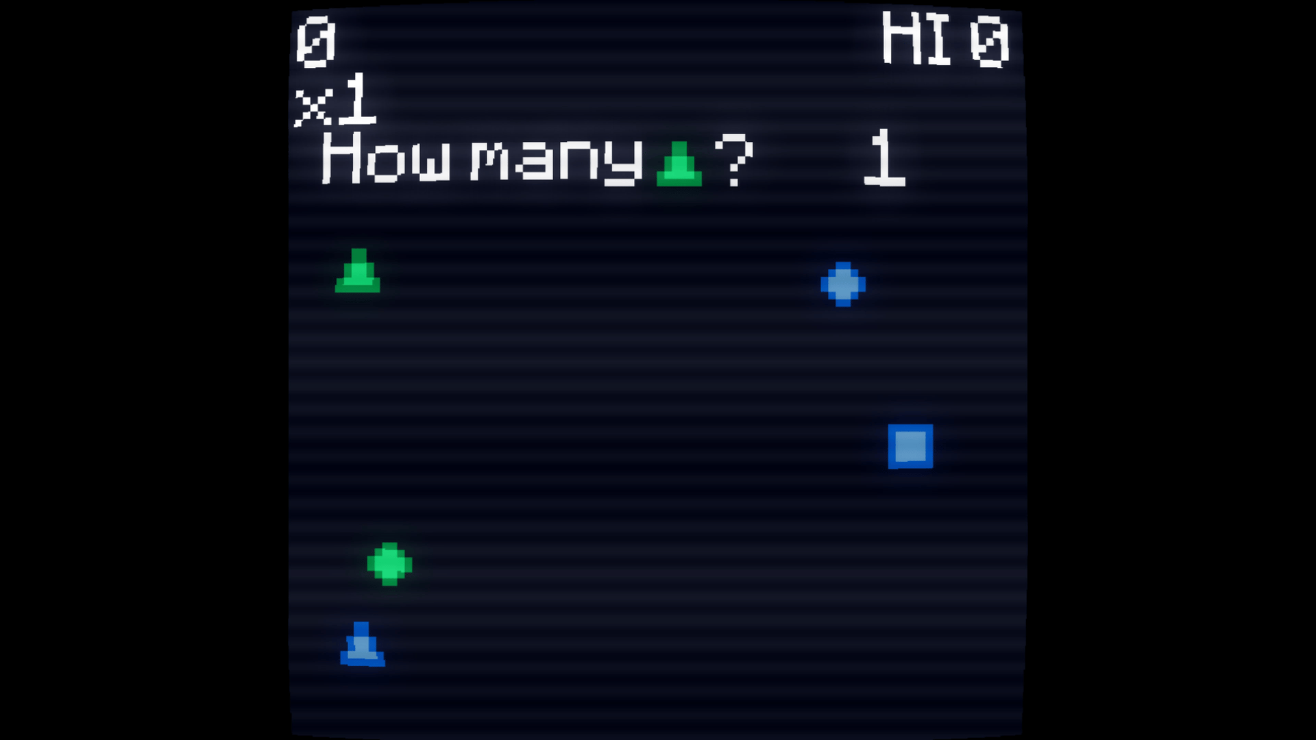 Think fast, fast thinker! COUNT is a fast paced mathematics arcade game where, as the title implies, you need to count fast! The objective is quite simple, you have a counter that will quickly increase and you'll have random shapes with different colors to count. The counter will go periodically faster and the counting objectives will get trickier and more confusing. Get as many right answers as you can in a row to get all the achievements. Don't get a wrong answer or wait too long because you will lose!