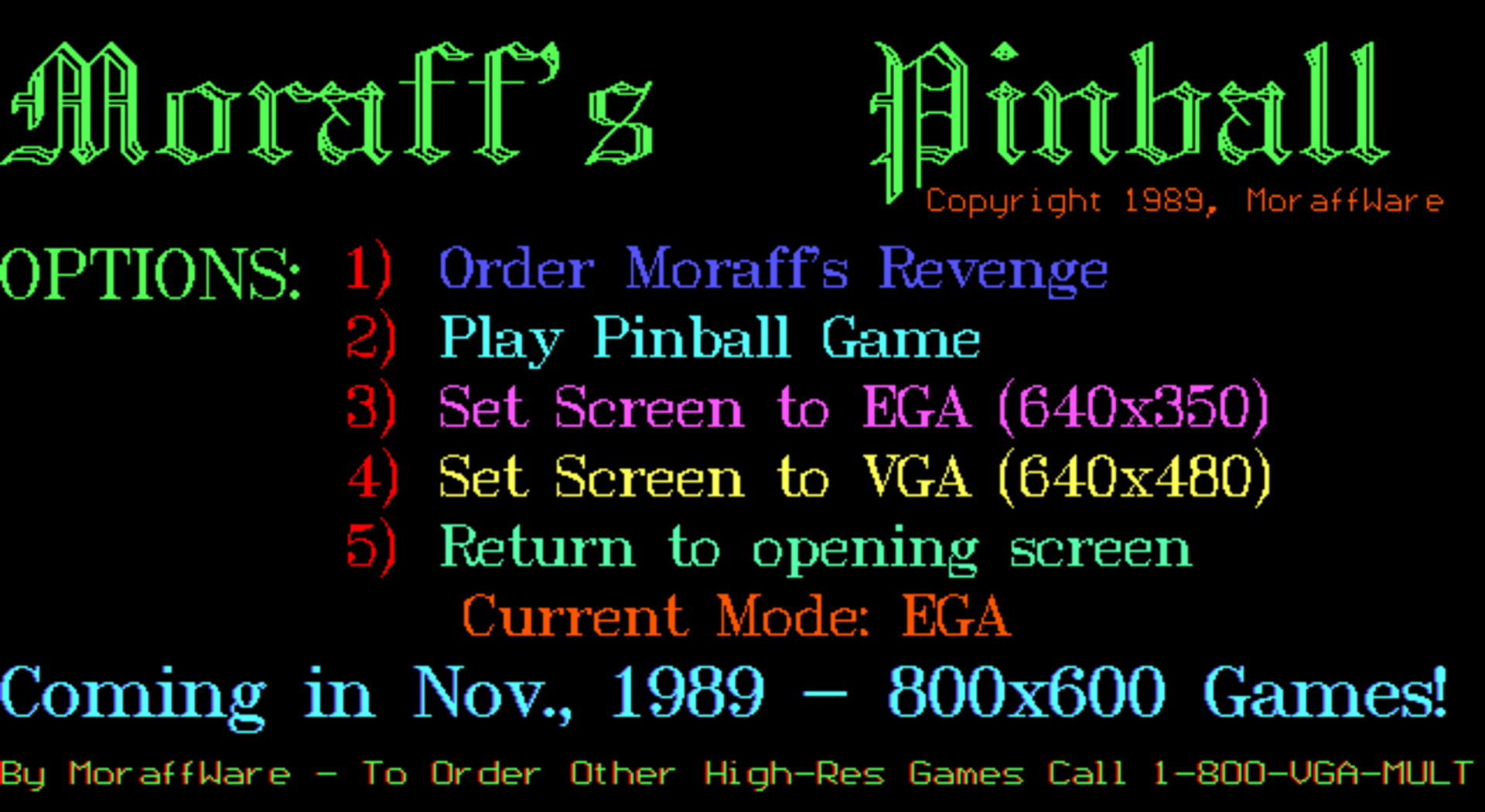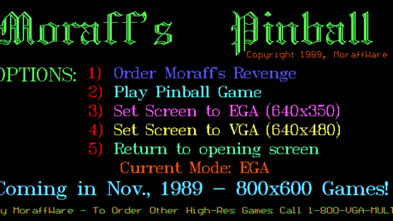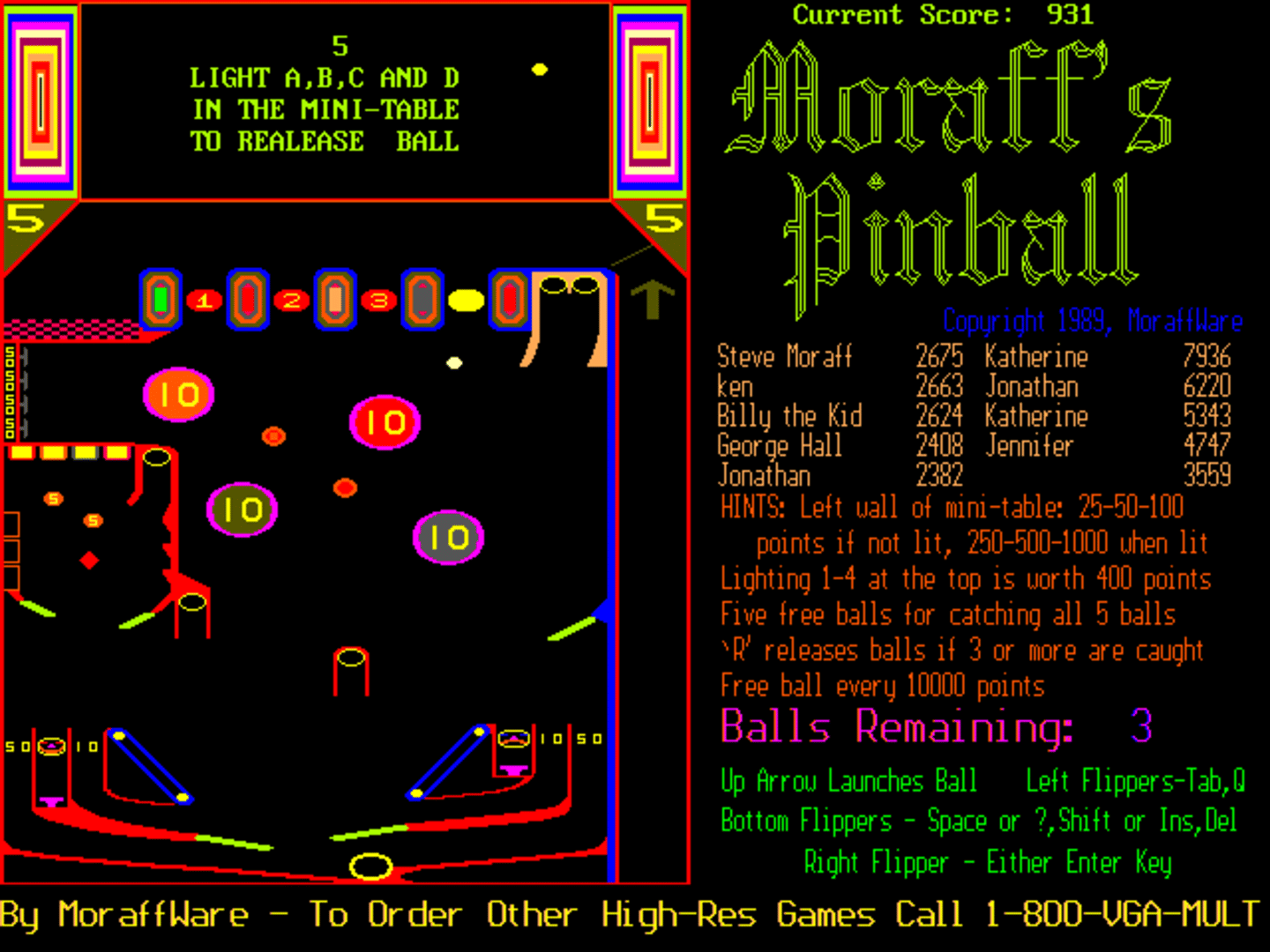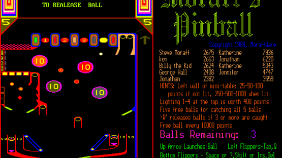 A simple early dos shareware Pinball game. Supports both EGA and VGA resolutions. As well as 5 ball multiball.