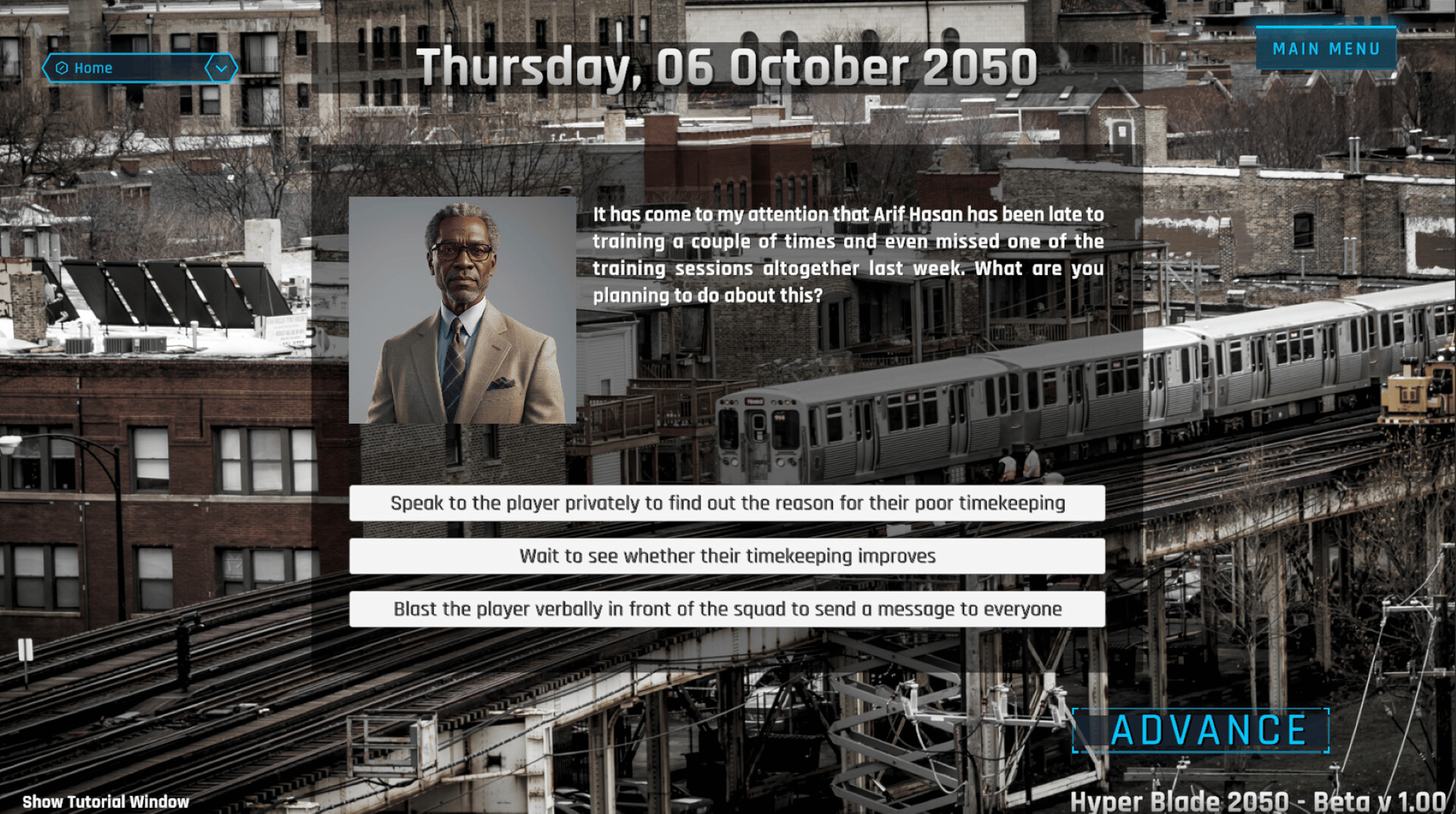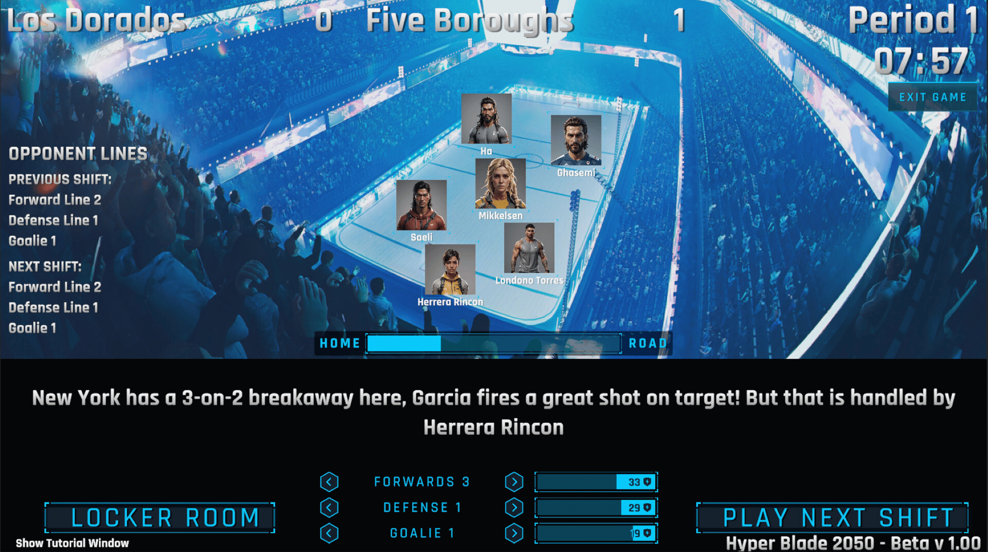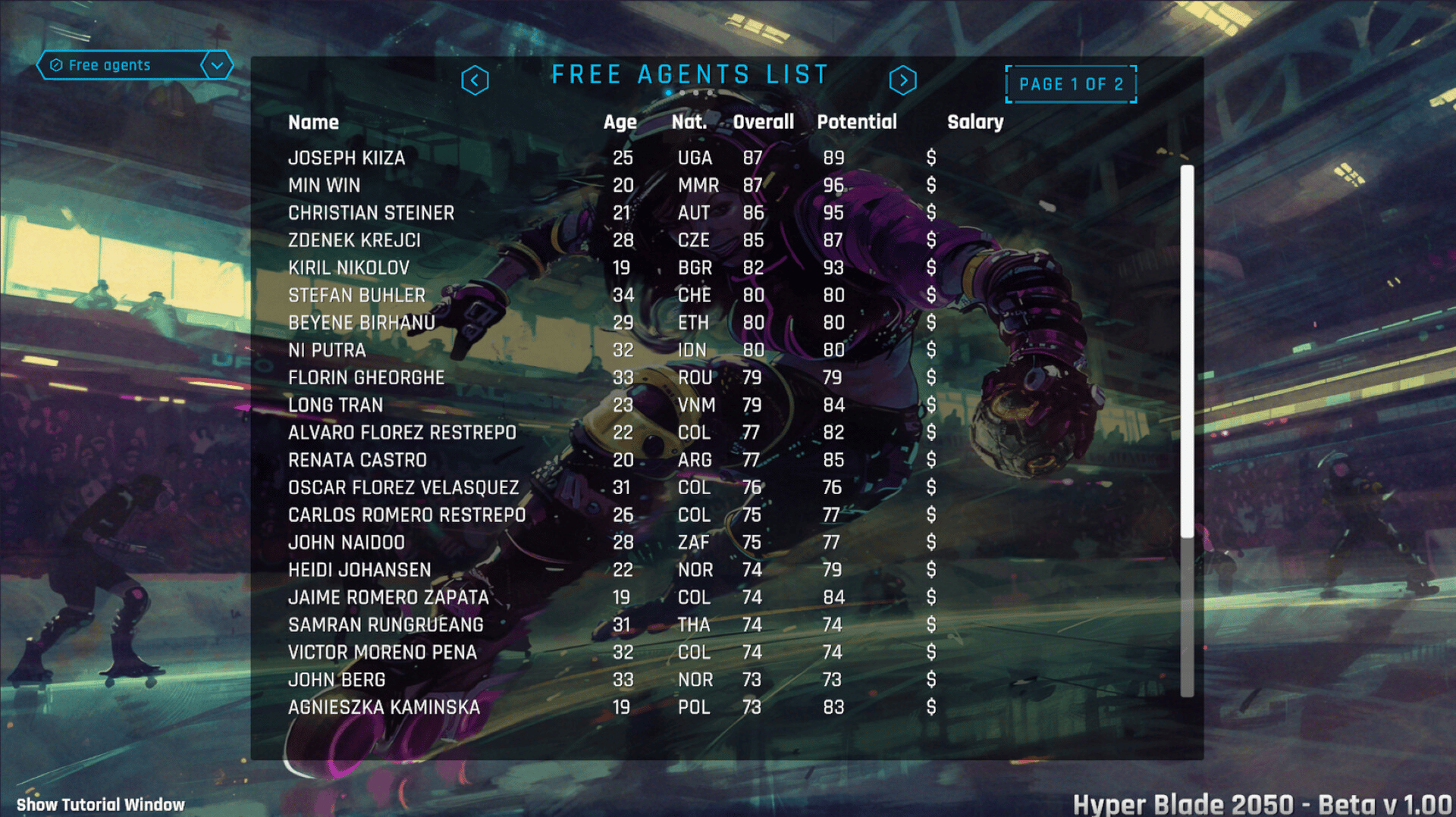 HyperBlade 2050 is a futuristic text-based sports management simulation set on a dystopian Earth. Experience the excitement of professional sports management, whilst being drawn into the rich lore of society in an alternative future of the 2050s.