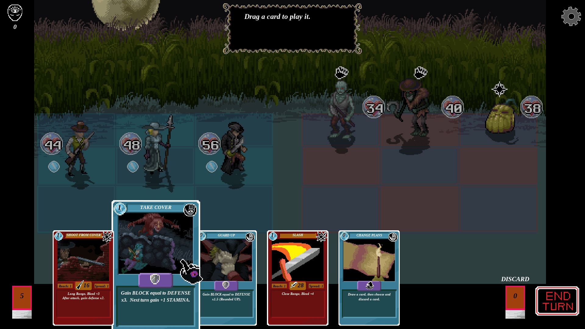 A Rogue-lite Deckbuilder set in early 1800s United States. Play as members of a secret organization that investigates occult activity in an effort to stop various cults from summoning Eldritch Gods. Acquire cards to create combos and synergies to defeat your enemies in turn-based combat!