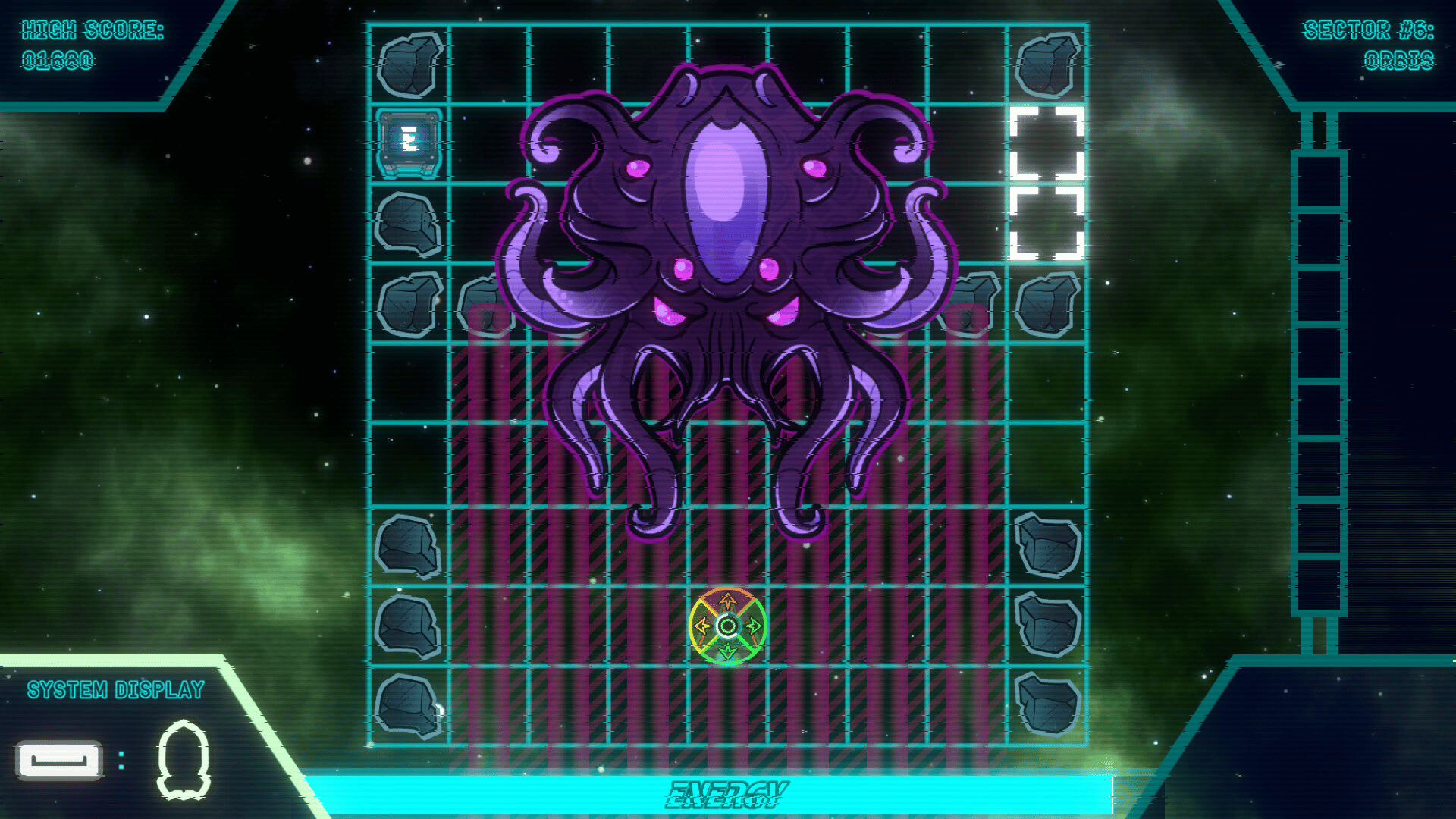A grid-based arcade shooter where enemies only move when you do. You have about a second before they break free of the time freeze and scramble your ship's controls again and again. Best of luck. You'll need it.