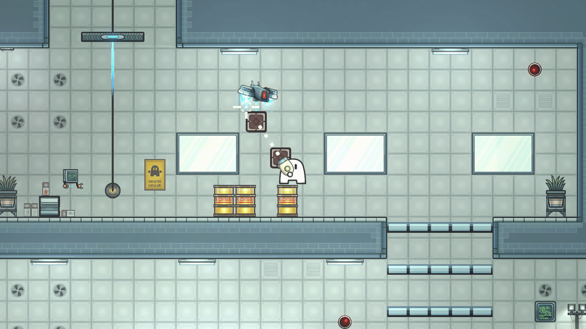 You and your friend are test subjects (?) in a super lab run by a mysterious robot! With an air gun and a grappling hook, cooperate to overcome its obstacle courses. Use each characters unique abilities to tackle challenges and enjoy a fun, chaotic co-op platformer in a cute and casual world!