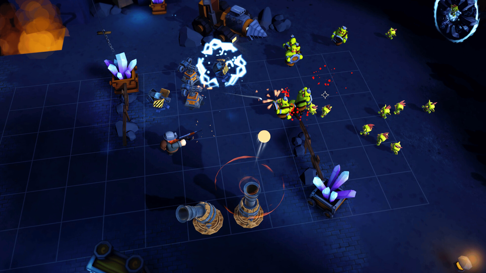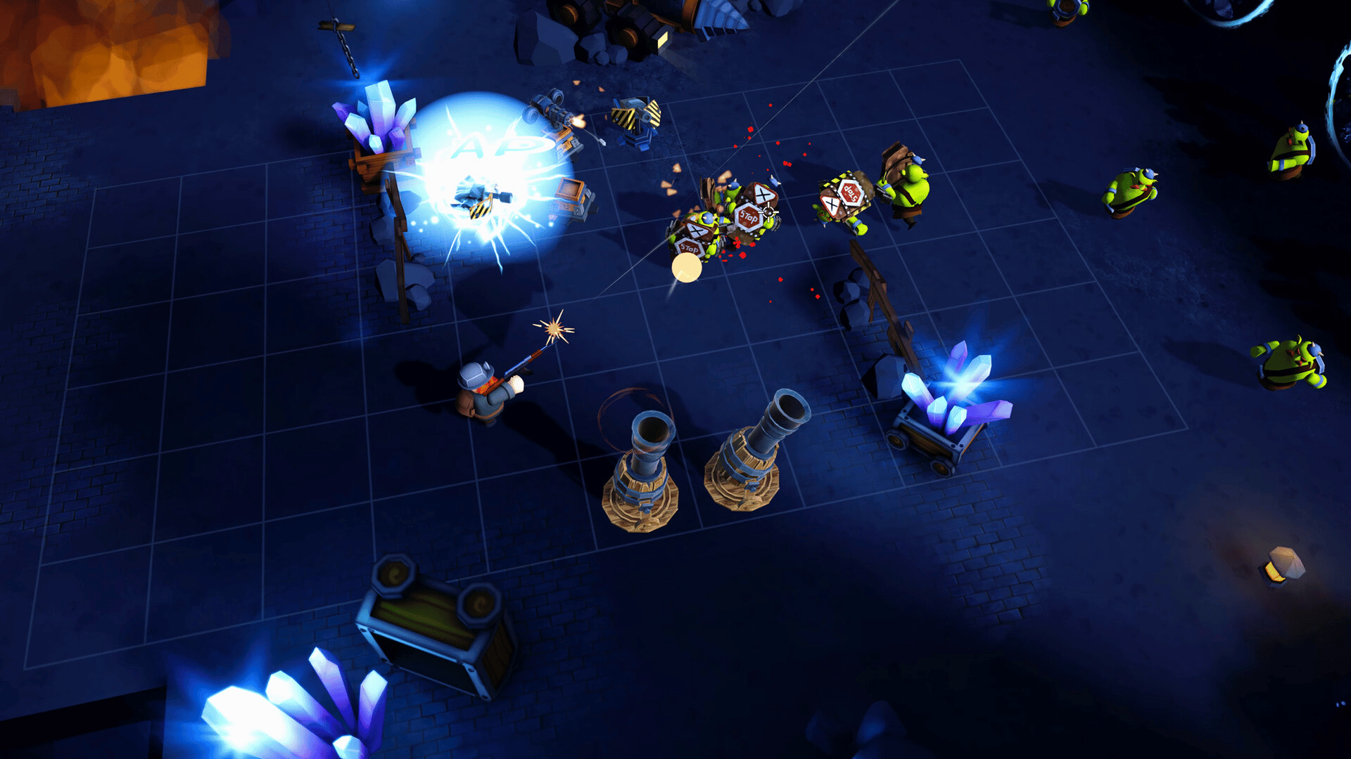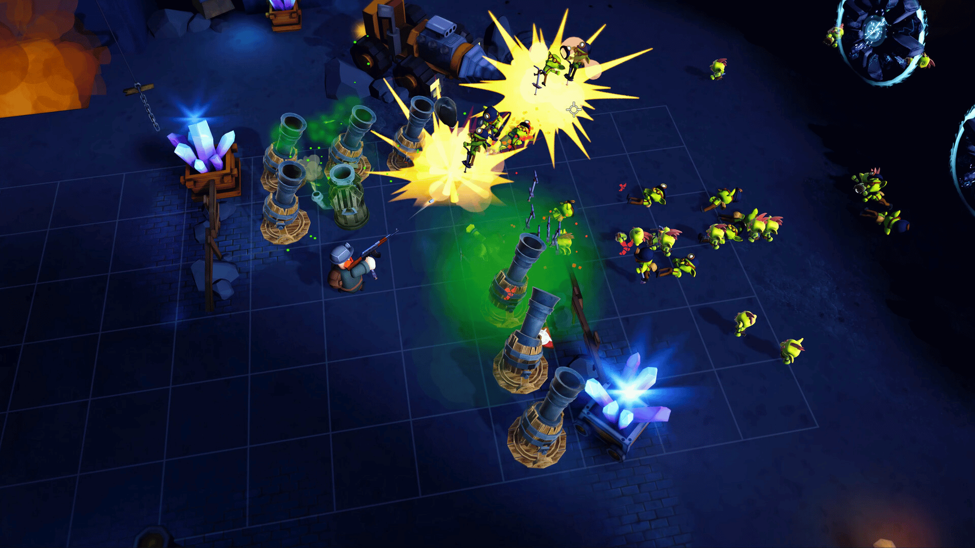 Fight big battles in the mines, get to mining and collecting gold and minerals. build and upgrade your towers, power up with treasure chests. Defend your base from looting goblins! using variety of weapons and tower, from RPG, ak47, canons towers, to sawblade towers and more!
