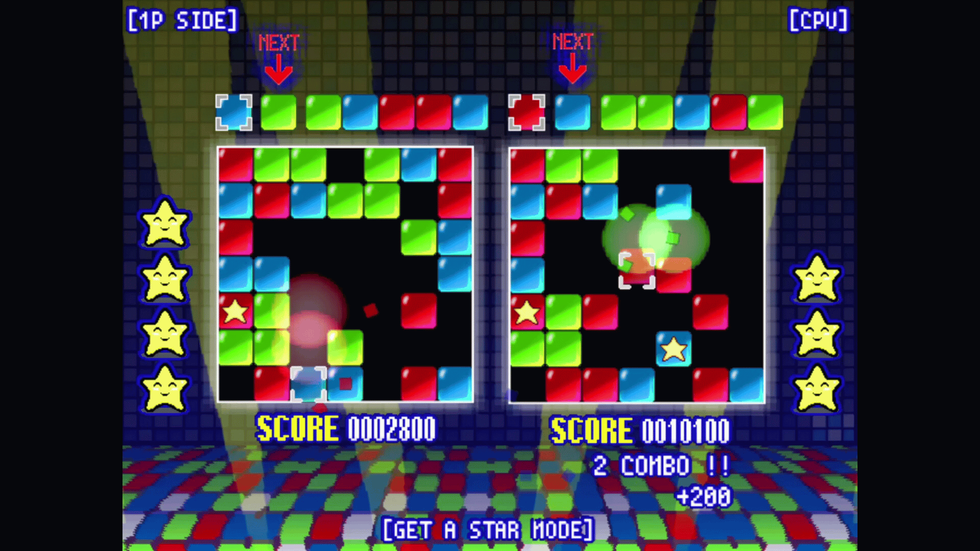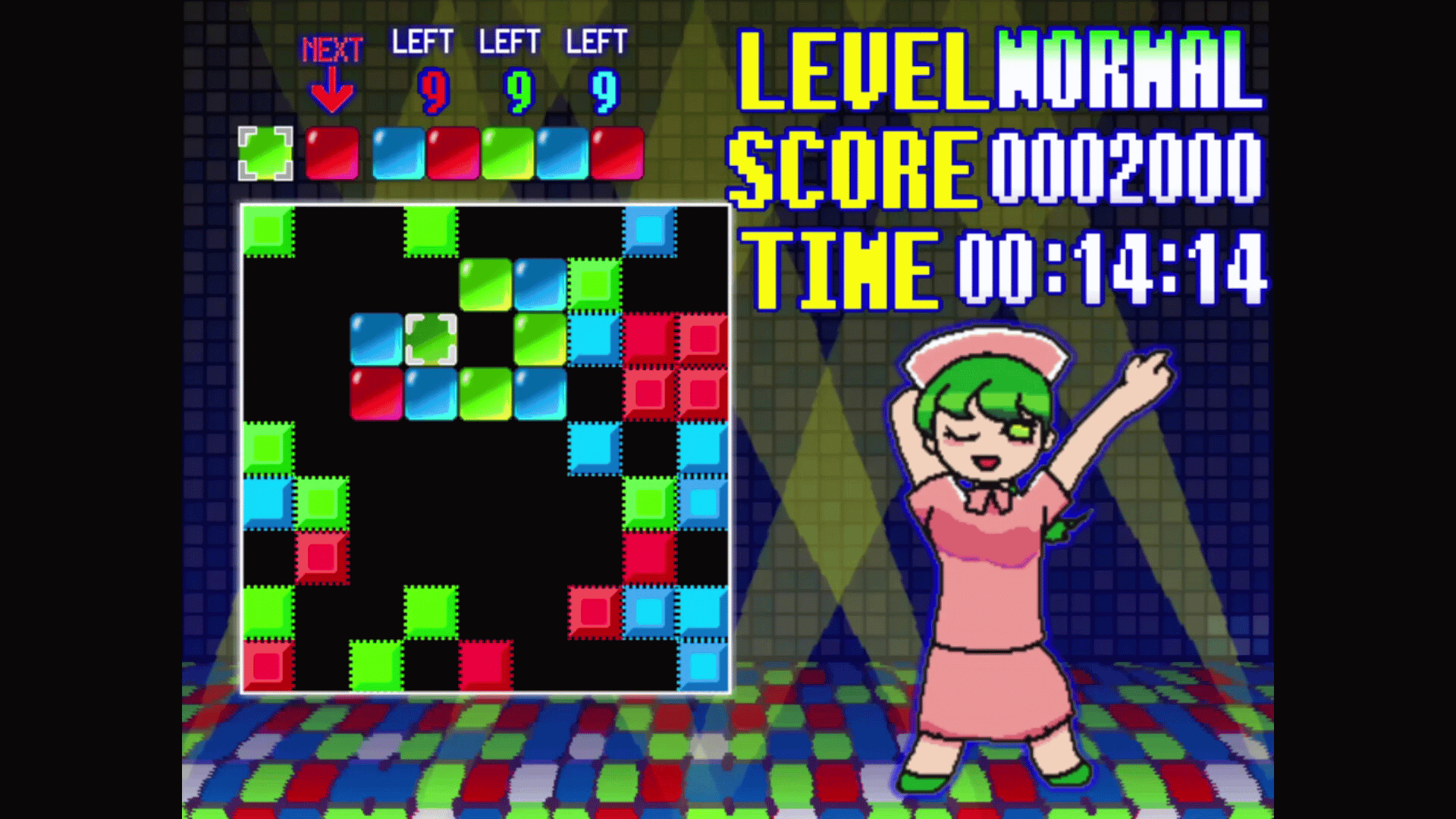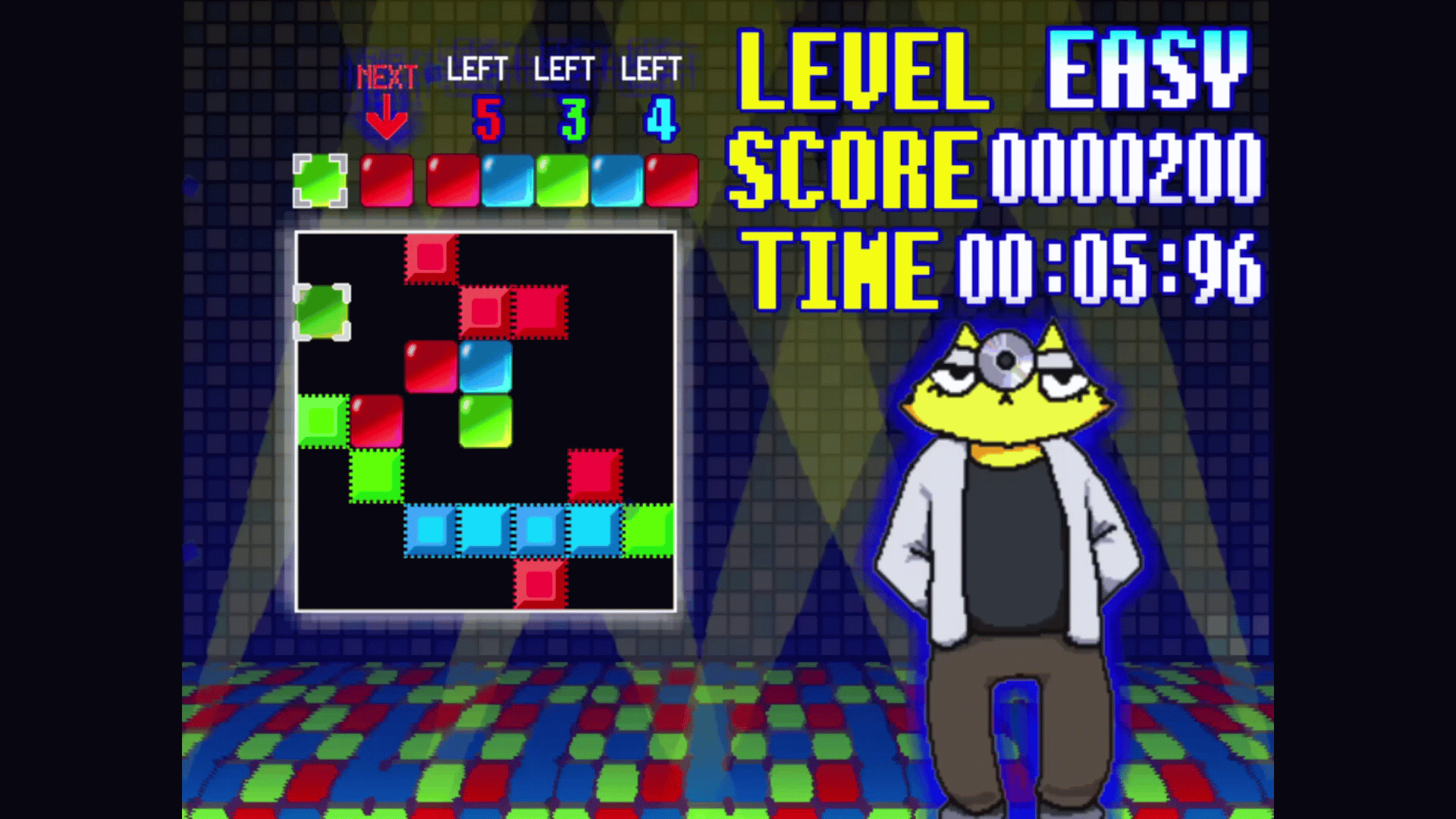 A puzzle game spinoff of Ultra Fight Da! Kyanta 2. As Dr. Kyanta or Masako, move around the grid to break colored blocks across the board, or go head-to-head against another player or the CPU, and be the first to obtain 5 stars to claim victory.