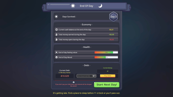 You have nothing. Try to survive as a homeless person in the ruthless streets and pay back your debt. Will you escape the streets to live with honor and pride, or will you lose yourself along the way?
