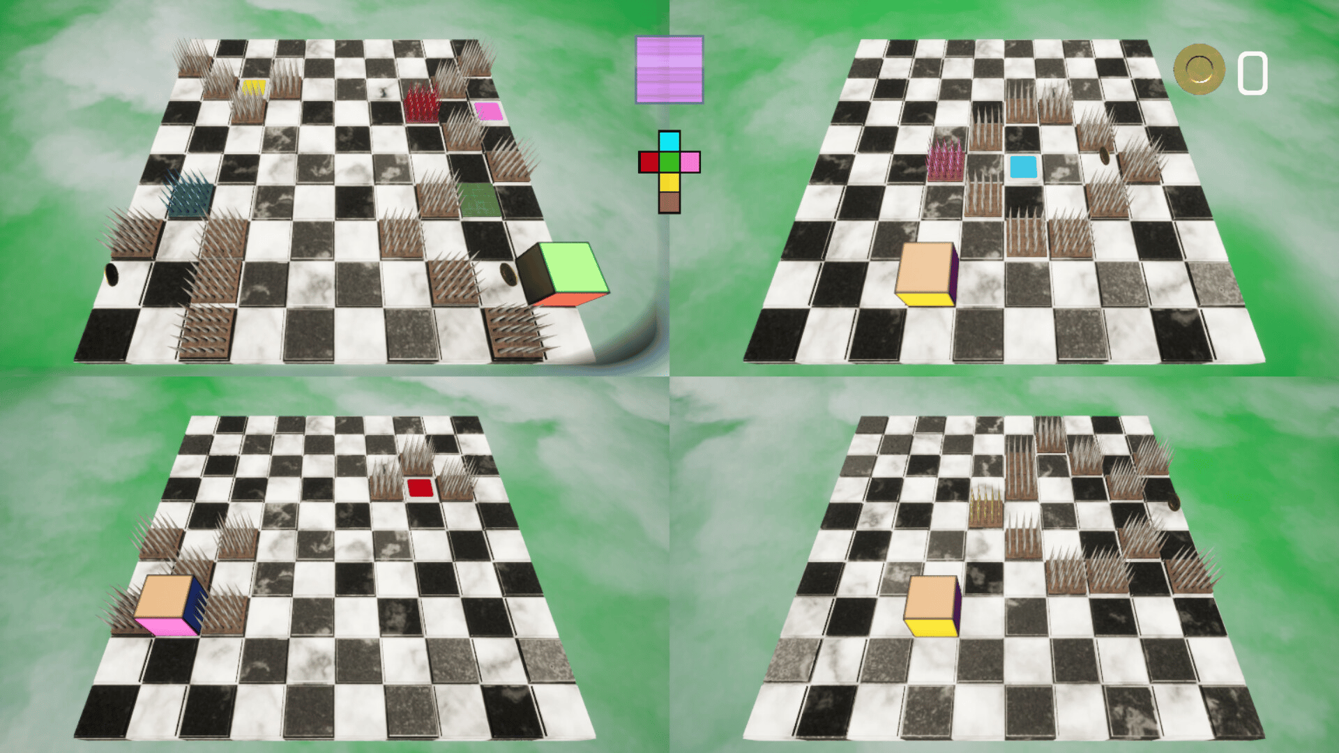 The Cubes is a colorful puzzle adventure where you control four unique cubes to solve spatial challenges. Switch between the cubes, activate buttons, overcome spikes, collect coins and solve puzzles in a relaxing yet brain-teasing experience.