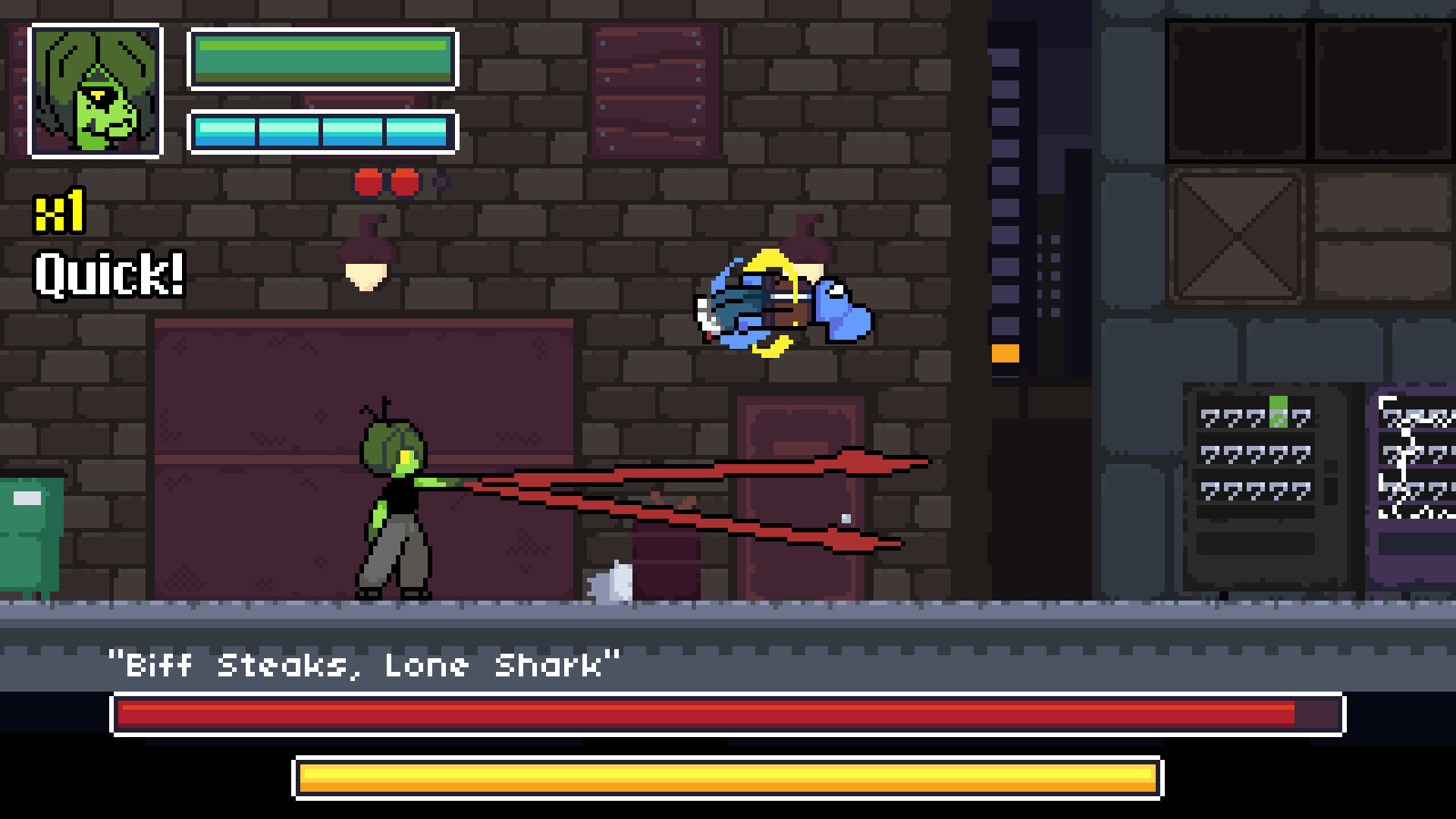 Bottom-Up Beatdown: Hostile Takeover is an intense 2D character action game set in a world dominated by corporations led by monsters! The only way out is up! Become a star solo or share the spotlight with friends in co-op mode!