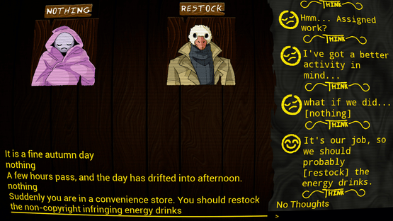 This is a retro story game about choices and the voices in your head. Unlock new voices, new thoughts, and new endings.