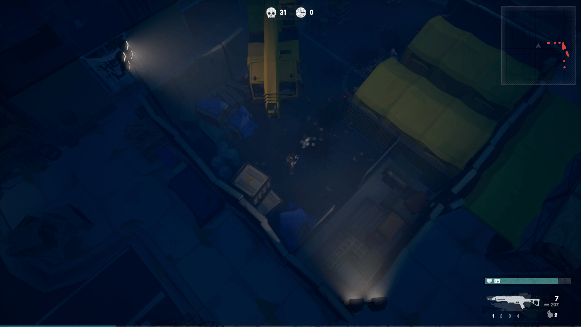 Top-down co-op survival shooter for 1-4 players. Battle zombie hordes, complete dangerous missions, and scavenge gear in infected zones. Upgrade your survivor and fight to live.