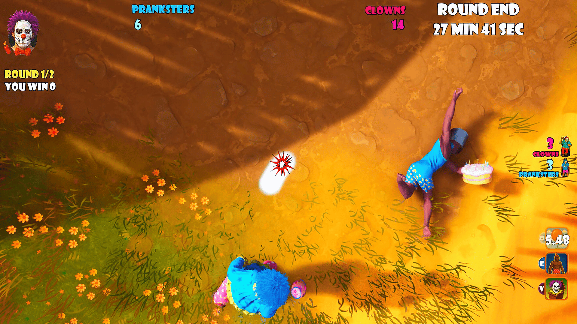 CLOWNOUT – Smash or dash in the ultimate clown vs. human showdown! Run, hide, eat candy, build rafts, or die hilariously in 60 seconds. Up to 6 players battle on 10 wild maps using traps, teleportation, disguises, and broomstick flight. Chaos, comedy, and total madness await!
