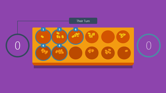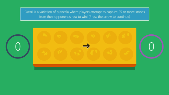 Owari is a variant of Mancala where players strategically attempt to capture stones from their opponent's row.