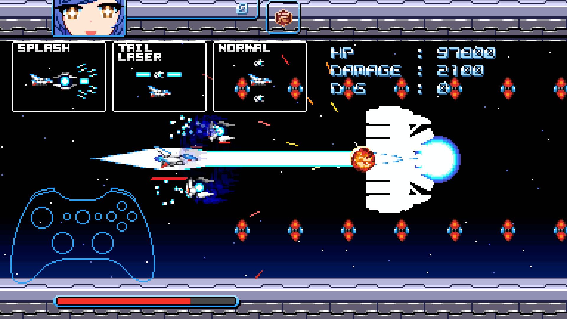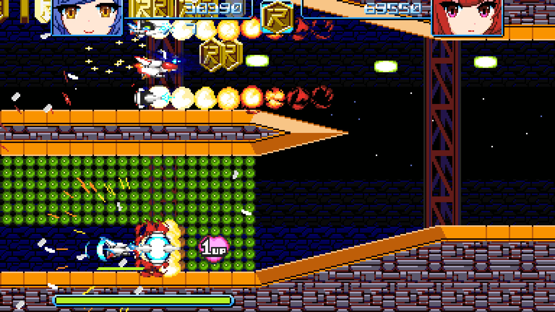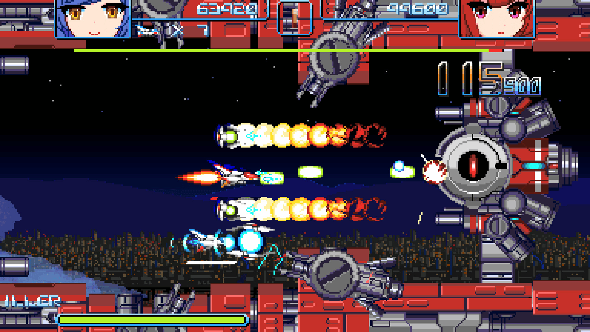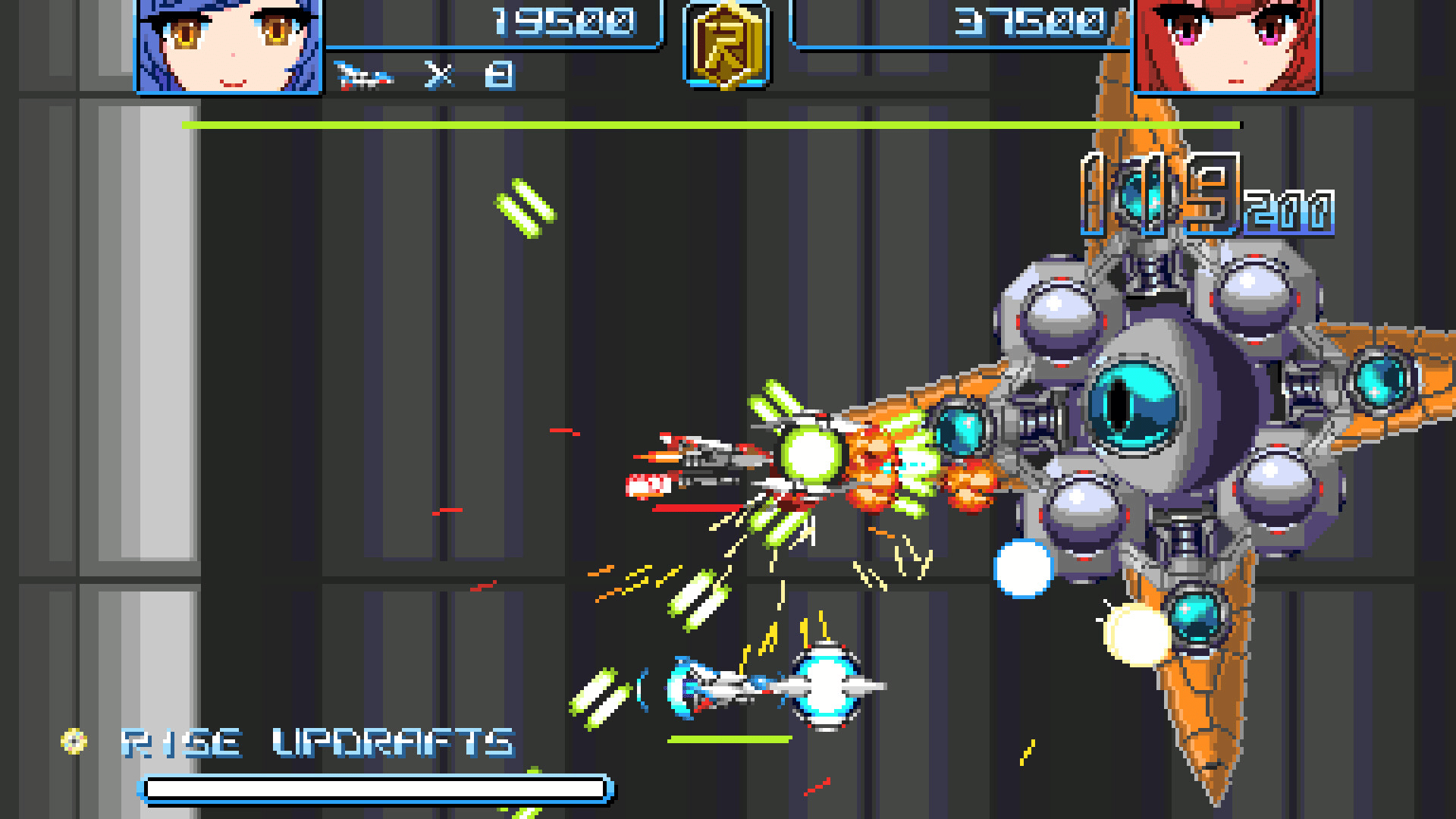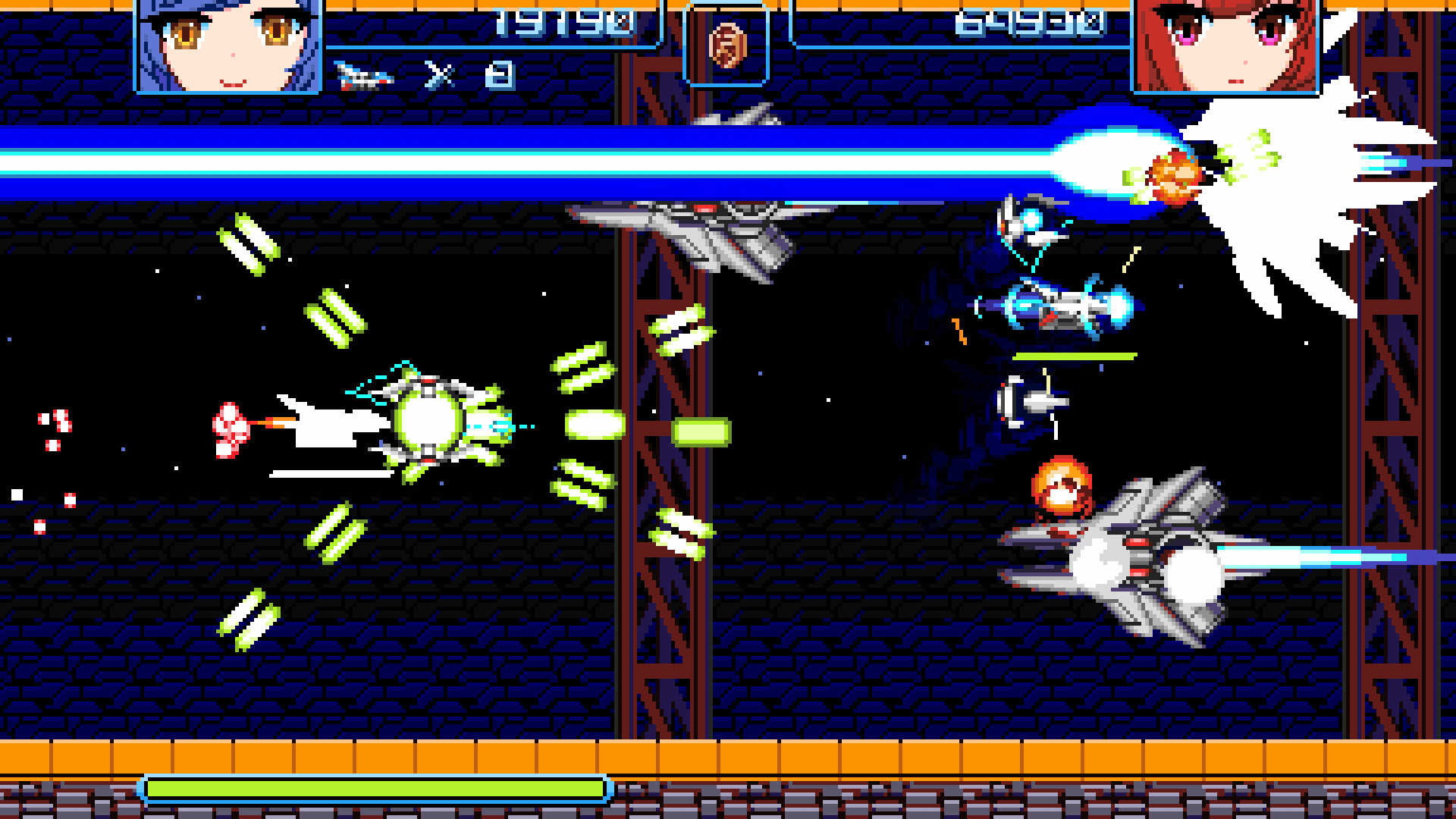 Shizuku and Akane...two pilots bound by rivalry and friendship battle to save their world from malevolent cosmic forces! A classic arcade style shmup with deeply satisfying fast paced combat, wide variety of load-out combos, and even local co-op!