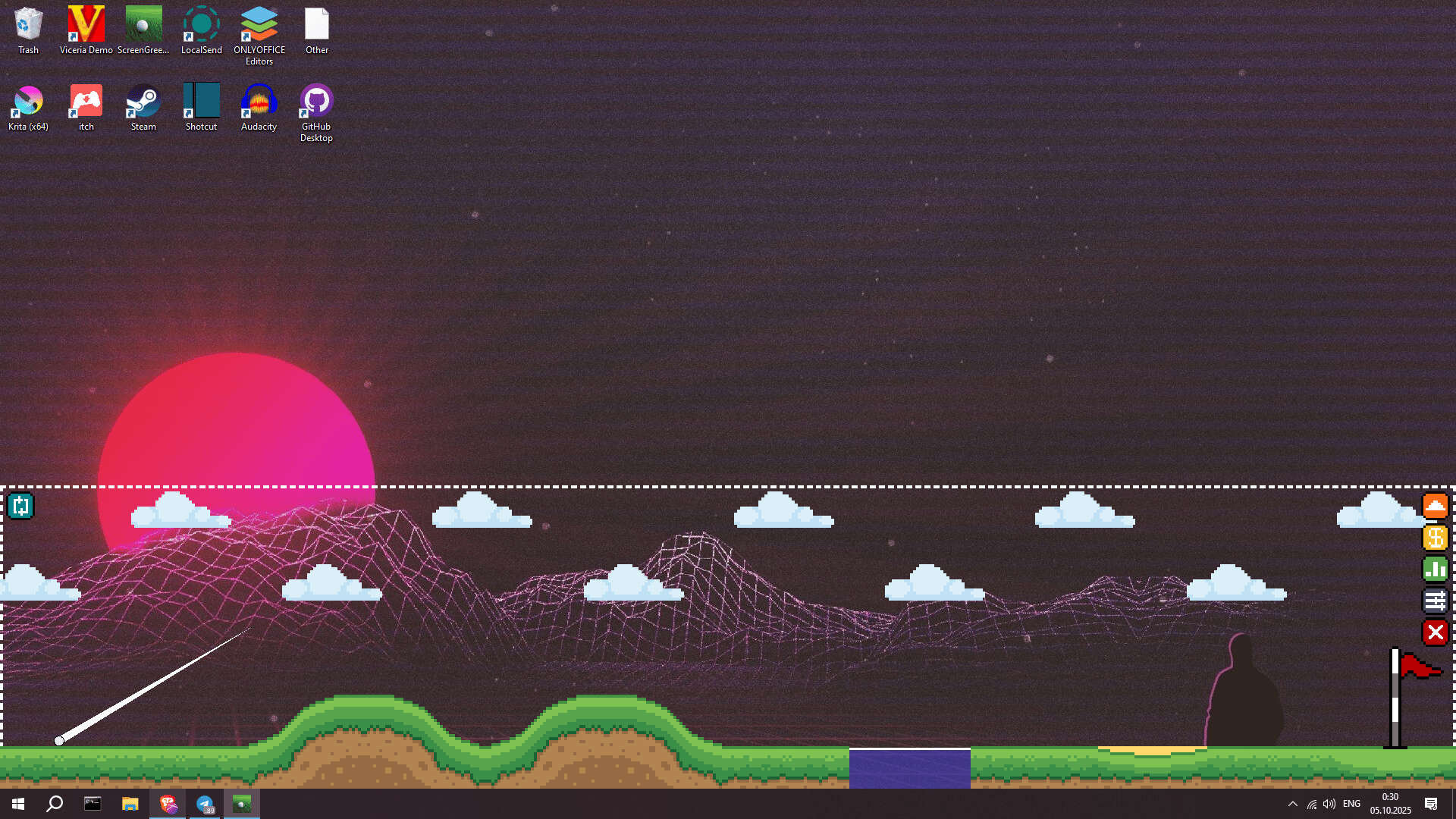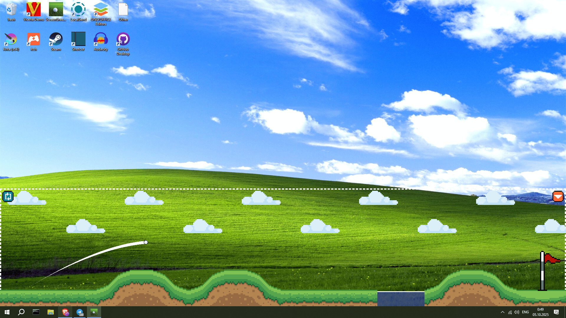A casual 2D golf simulator in a transparent window on your screen. Get the ball in the hole with as few strokes as possible, unlock new balls, skins, and effects, and enjoy randomly generated levels!