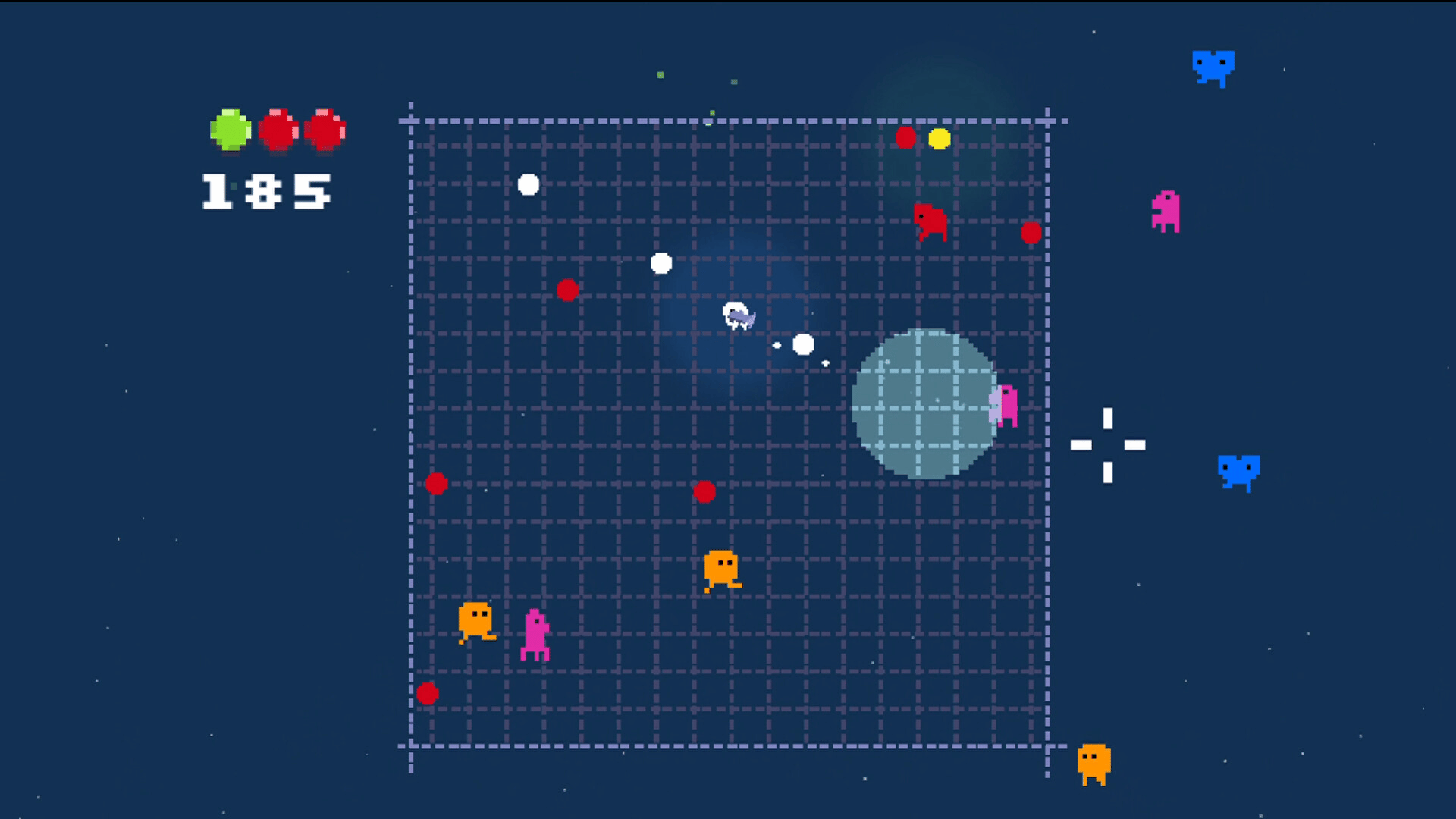 A minimalist top-down action game where every shot bounces, changes color, and can turn against you. Managing ricochets is your only chance to survive.