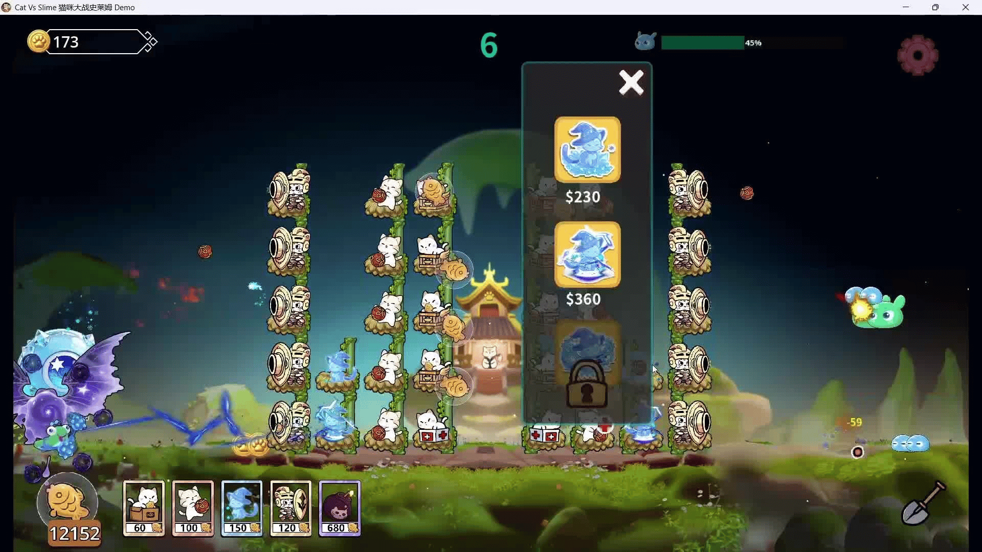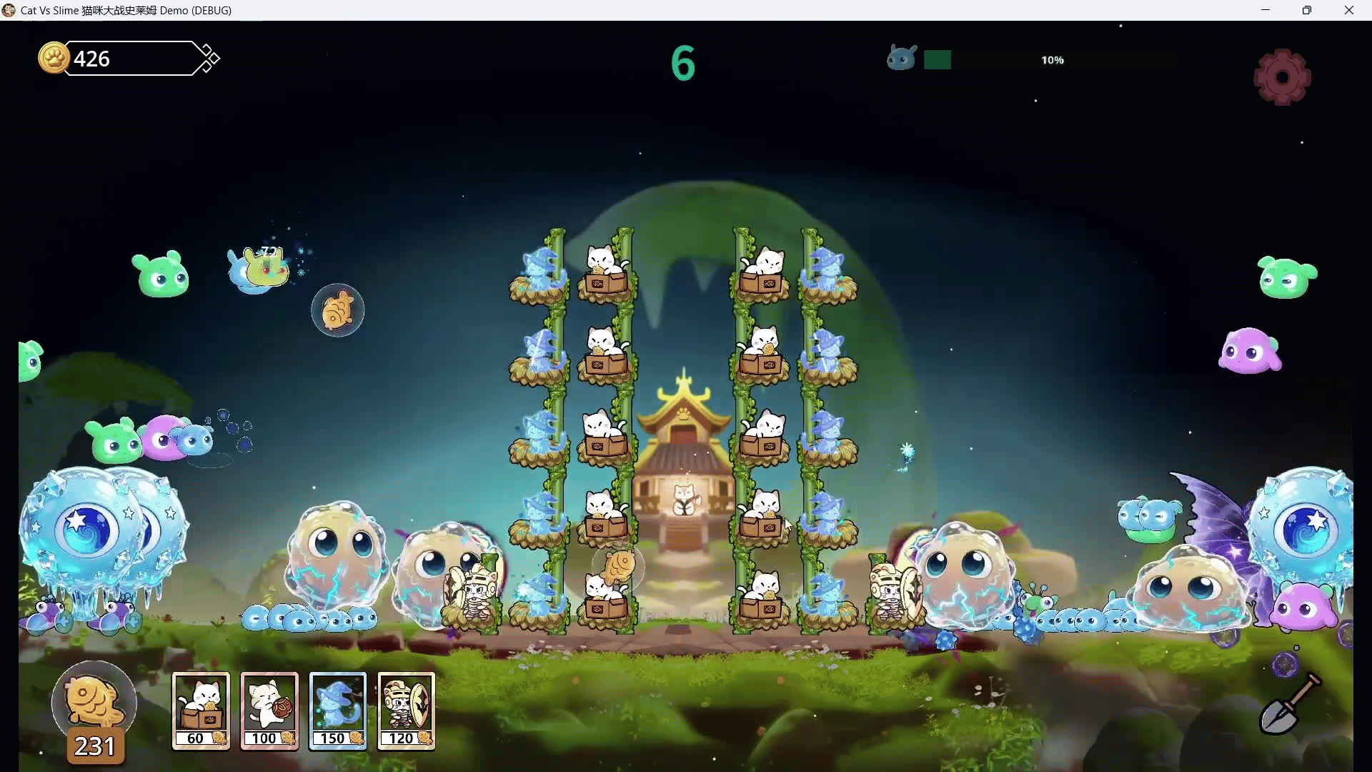 The cats can stack on top of each other like human ring performers, easily reaching the flying slime in the air. As the battle progresses, you can randomly unlock new cats, enhance the cat house, and the mild roguelike elements bring new surprises to each game.