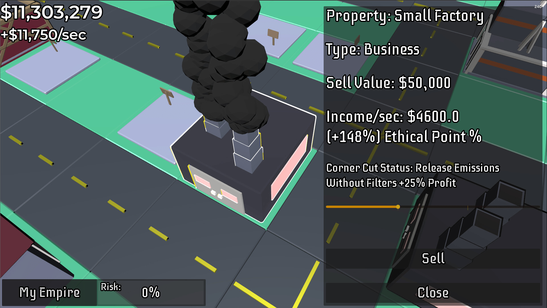 Become the richest business owner in this strategy-based simulator, choose your playstyle trying to balance ethics and profits in this chaotic low poly world. Will you keep your ethical businesses thriving or will you let it all crumble down for a quick buck?