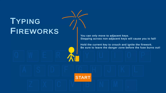 Typing Fireworks is a casual game where your fingers run across the keyboard to set off fireworks! You can only move to adjacent keys, escape the danger zone before the fuse burns out, and look up to enjoy the dazzling display when the fireworks bloom!
