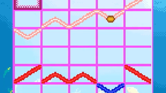 Gunpey offers a unique puzzle experience. As lines of various angles climb up the screen, the player's objective is to flip the lines, located in squares, to connect them over five columns. Connecting lines from left to right remove the connected row. If an incomplete line reaches the top of the screen, the game is over.