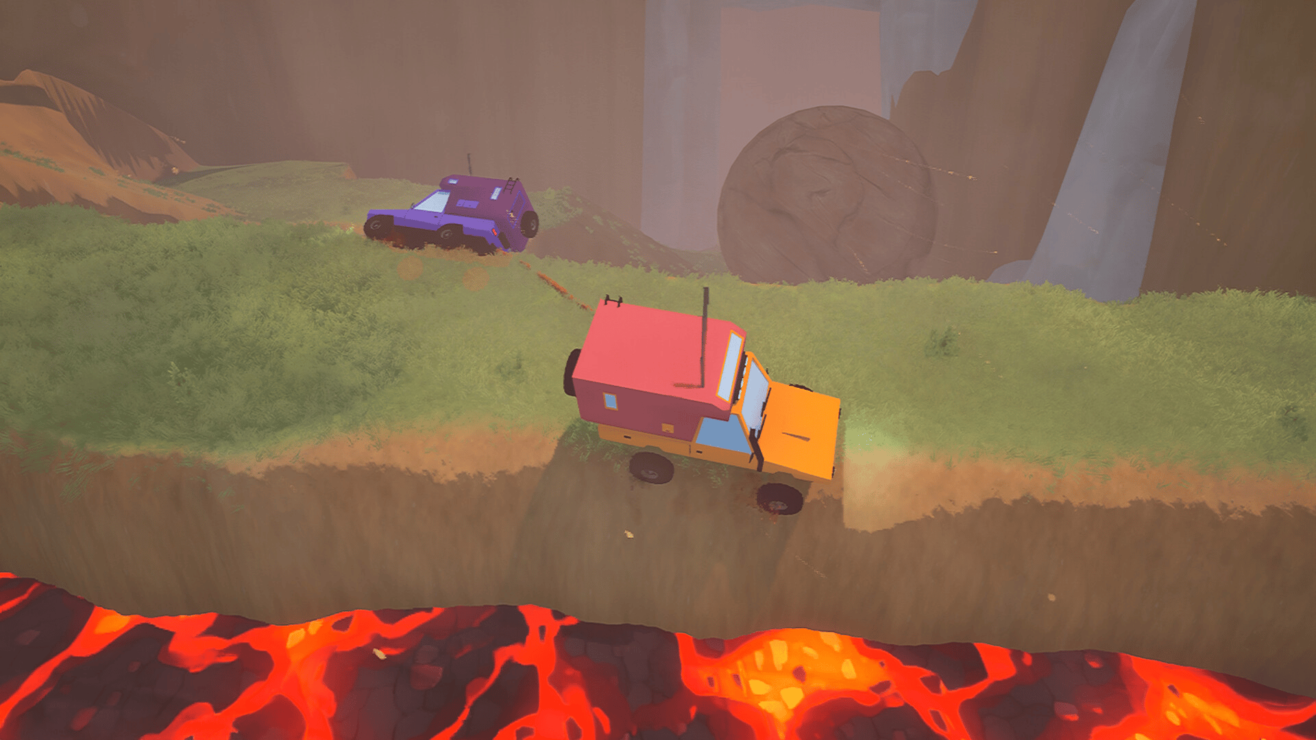 Team up in this chaotic 2-4 player co-op RC car adventure! Navigate dangerous mountain roads while tethered together, pulling each other back from disaster. Climb steep hills, survive wild weather, and reach the top without tumbling into the abyss!