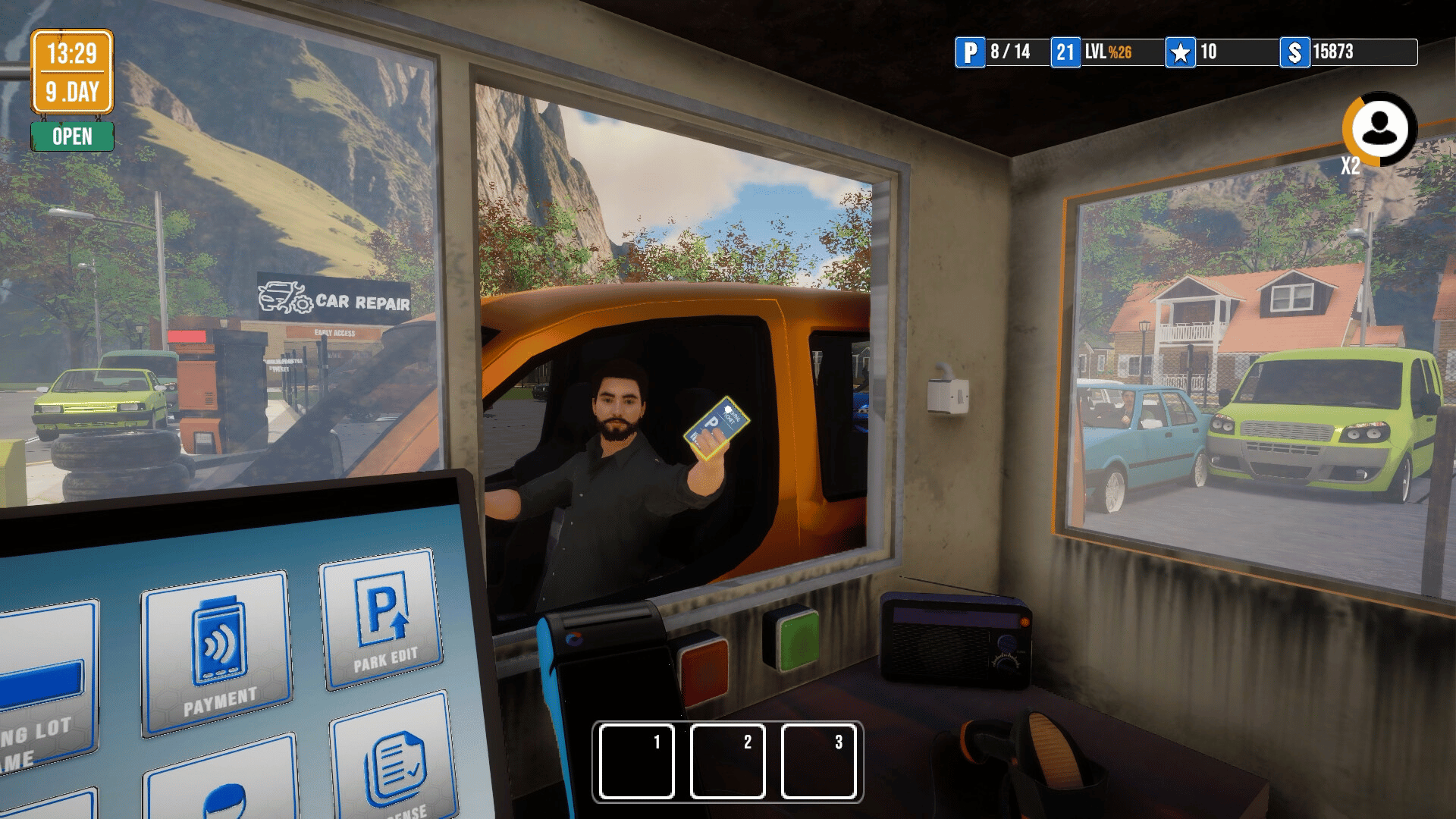 Build a parking business from scratch! Welcome cars as a valet, collect payments, expand your garage, and ensure security. Welcome to Parking Simulator with realistic mechanics and the chaos of city life!
