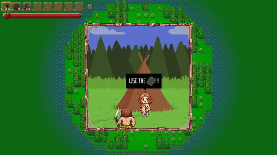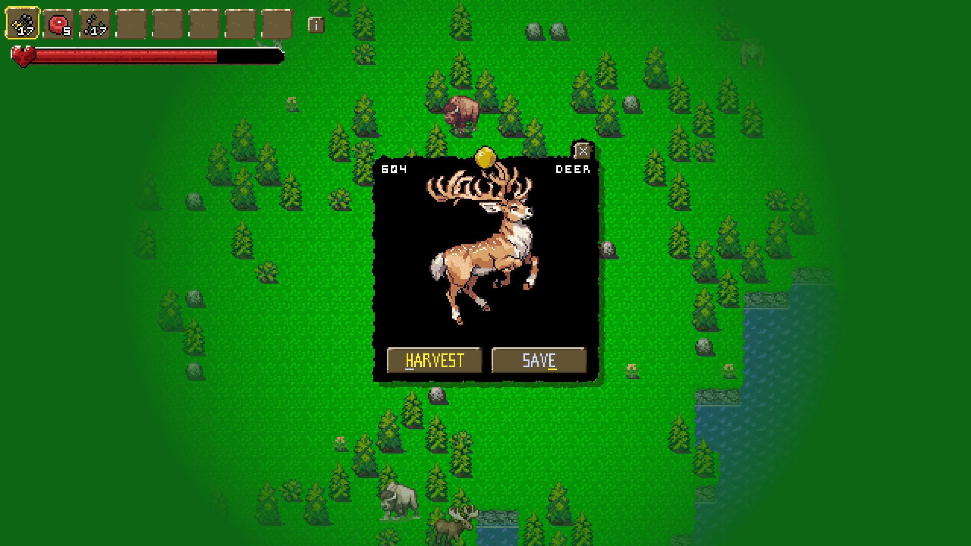 A prehistoric pixel art top-down survival-hunting roguelike with a first person shooting mechanic, where you attempt to survive in a chain of islands, to gather resources for yourself and your family, and hunt for rare trophies.
