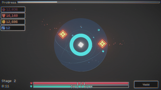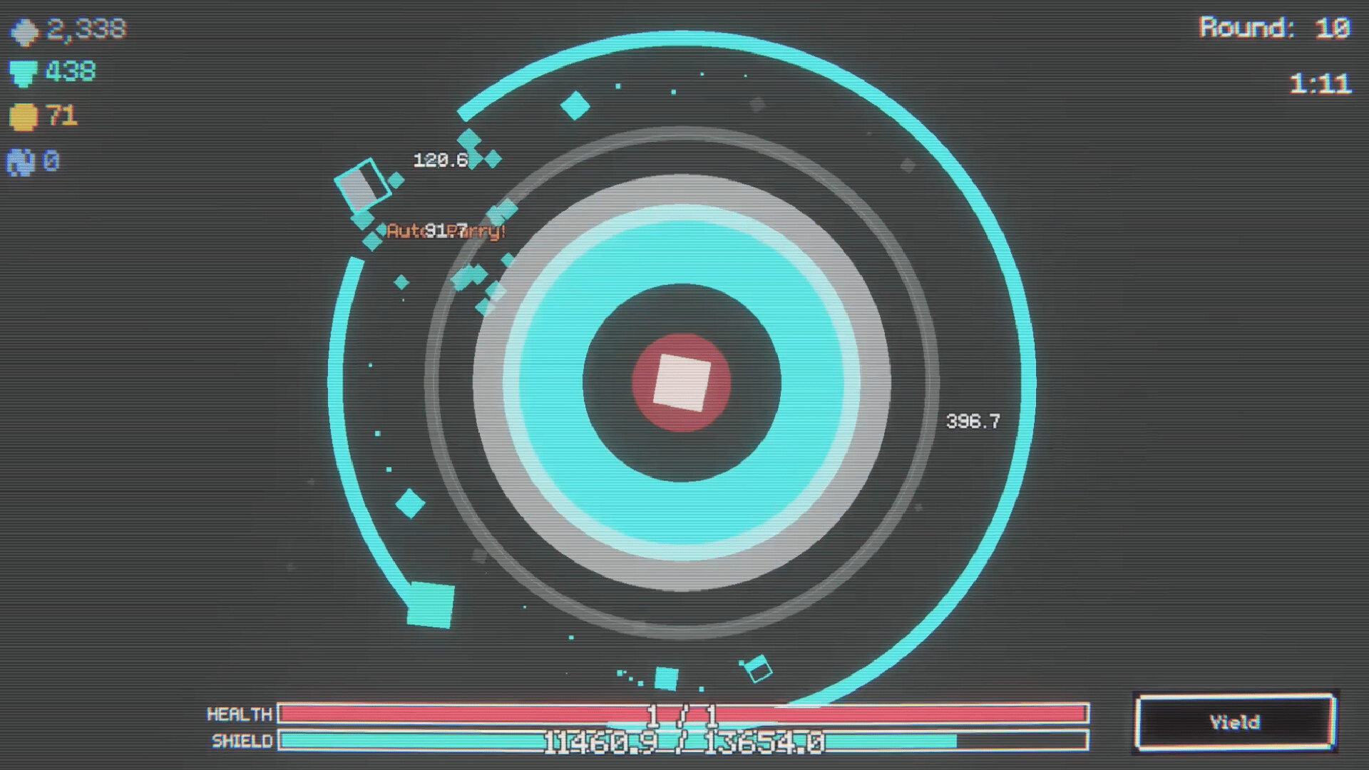 A minimalist 2D, one-button game with individual levels and an upgrade tree about parrying enemies at the right time.