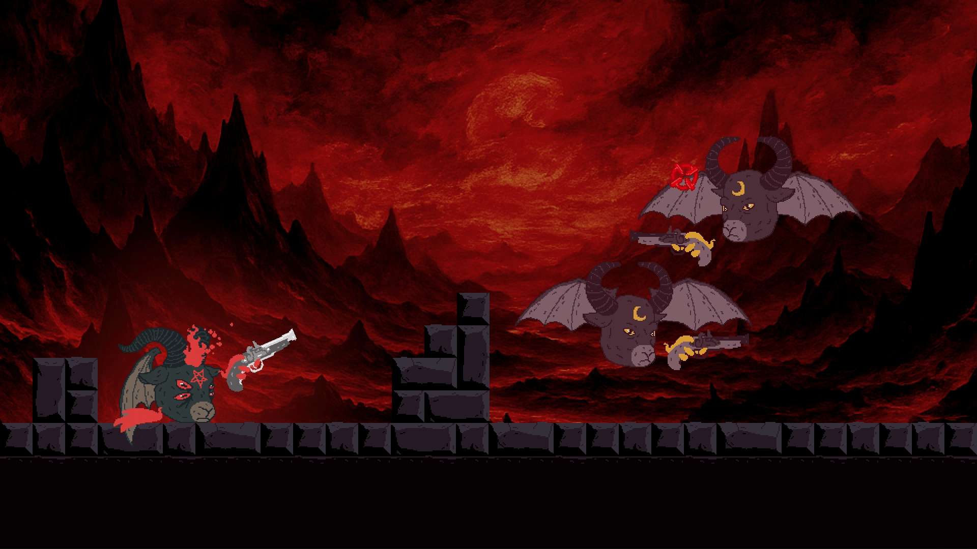 From the creators of Devil's Drizzle, B.O.D.E. is a pixel art metroidvania lite shooter with a satanic theme (and a healthy dose of blasphemy). Use your shotgun to move around and annihilate everything in your path. Destroy hell in search of revenge!