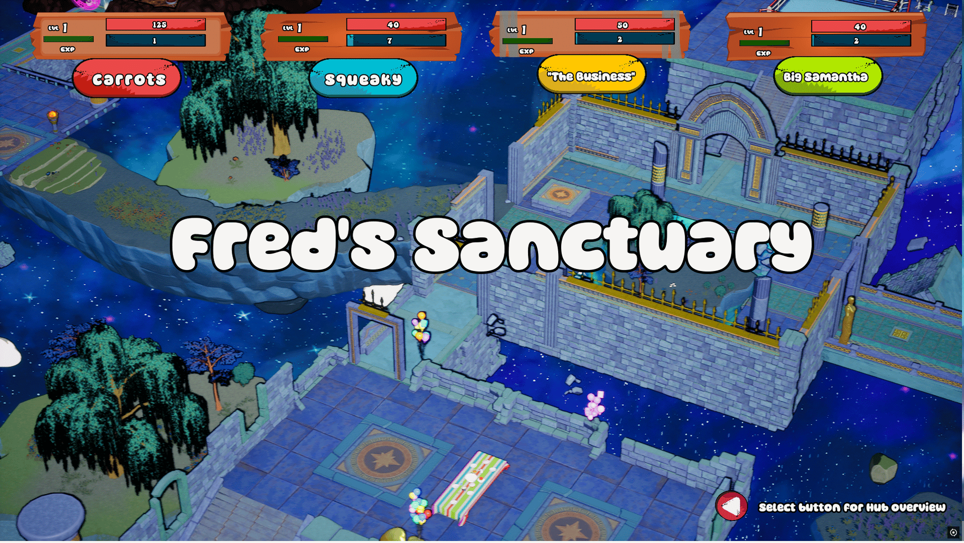 An absurd co-op dungeon crawler where the only thing more dangerous than the enemies is your own party.