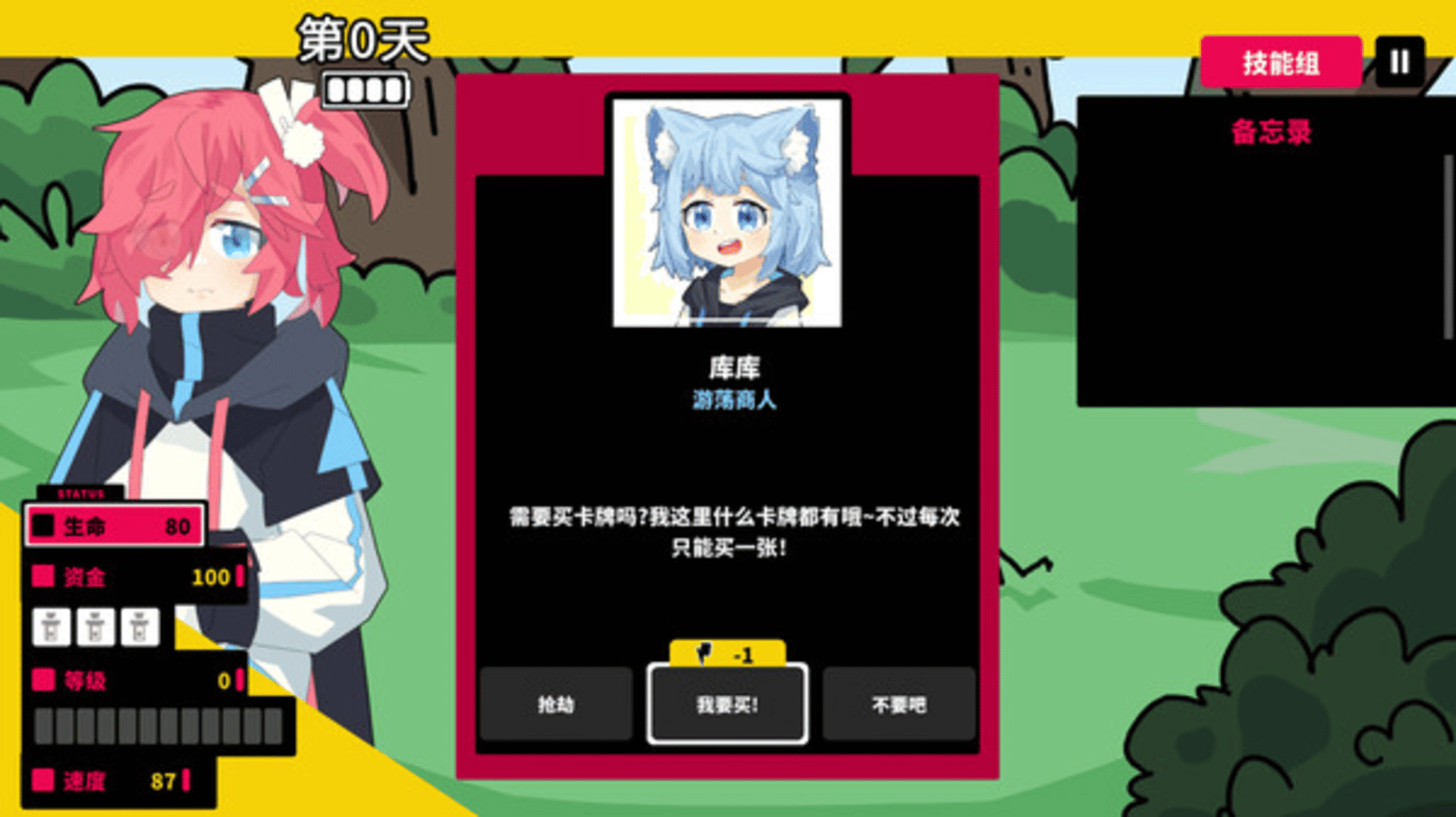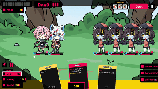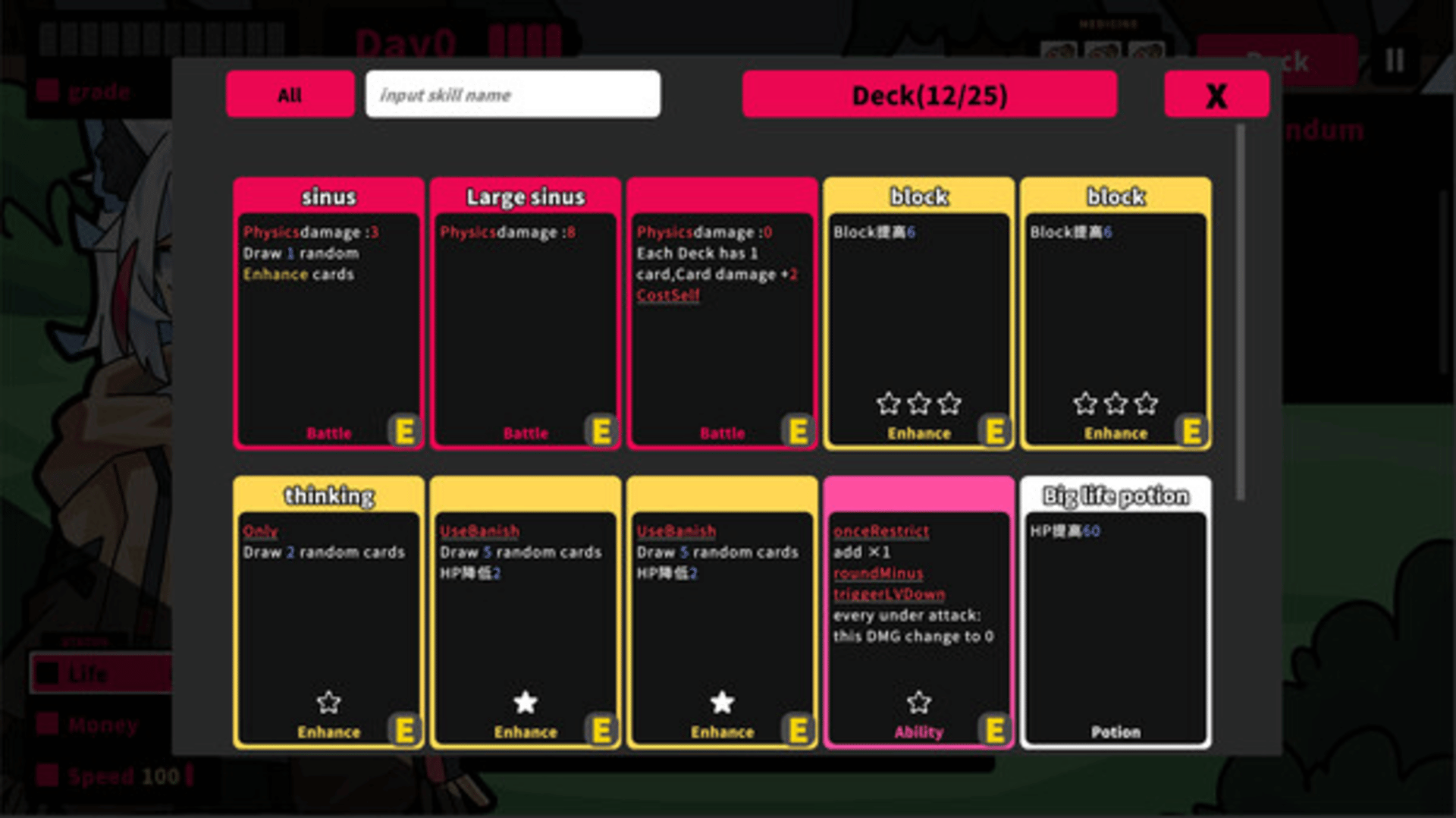 This game combines the gameplay of text adventure and card battles. You will play as an office worker who travels to another world, selecting cards to build your own deck. Random choice events provide you with various effects. Will you save everything, destroy everything, or do nothing at all?