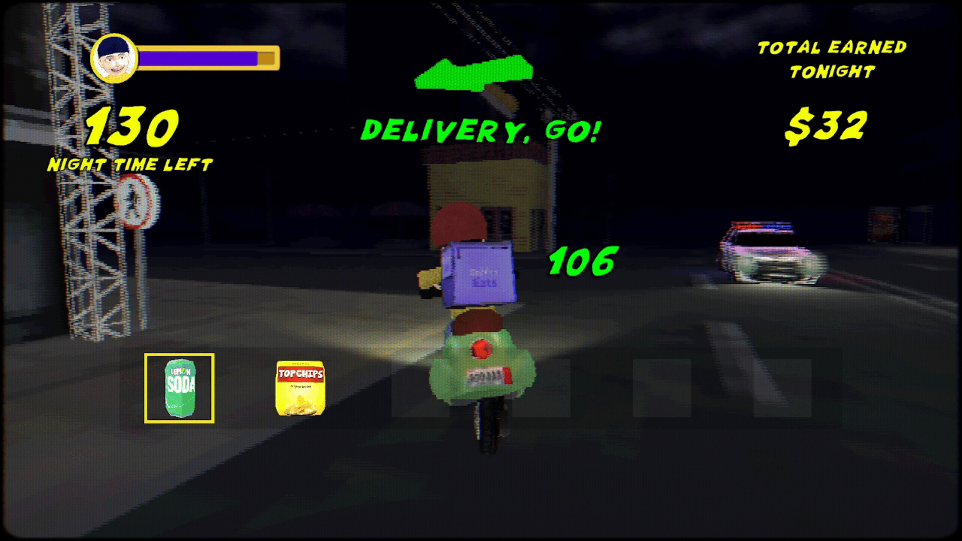 Deadlivery Night mixes a frenetic arcade gameplay with survival horror elements. Explore the city of Santa Monica while completing deliveries, escape the killer, meet colorful characters and unravel the truth in a world of conspiracies!
