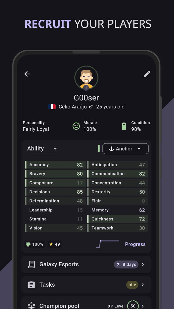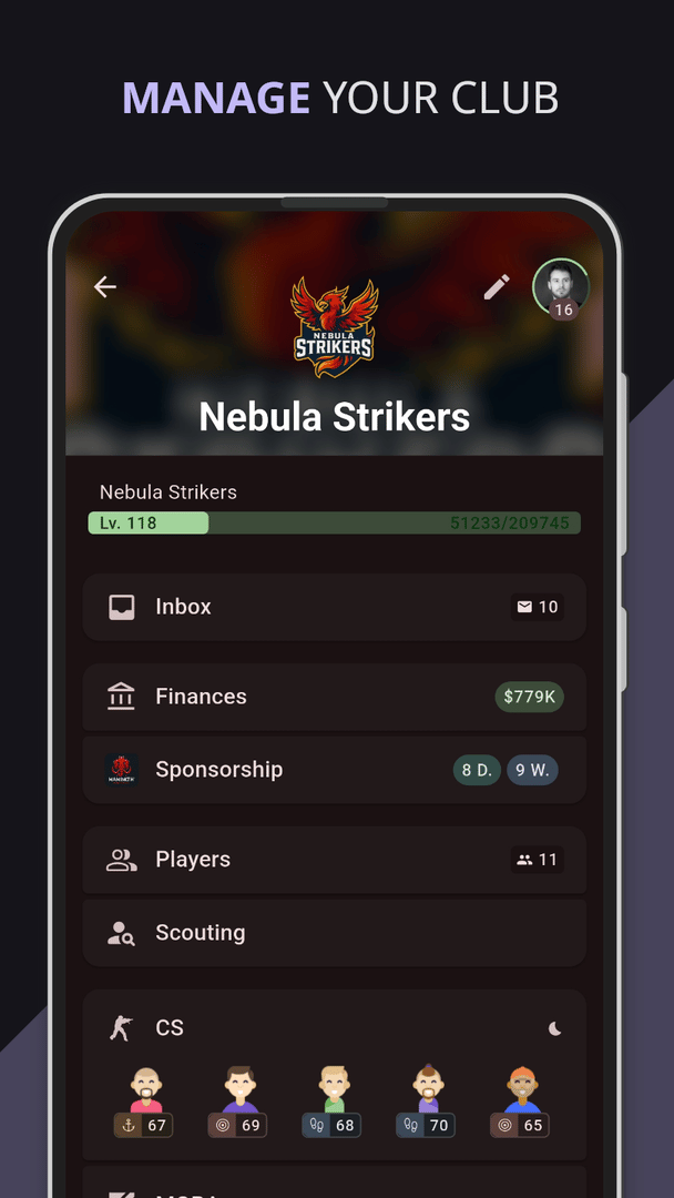 Build your dream Esports team and face other teams worldwide in multiplayer
