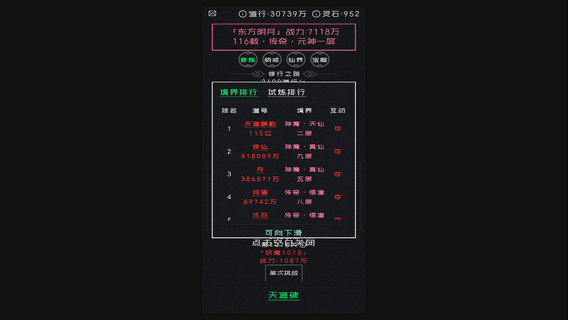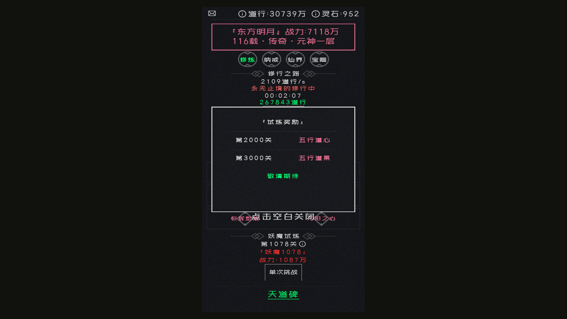 A text-based casual idle cultivation game.