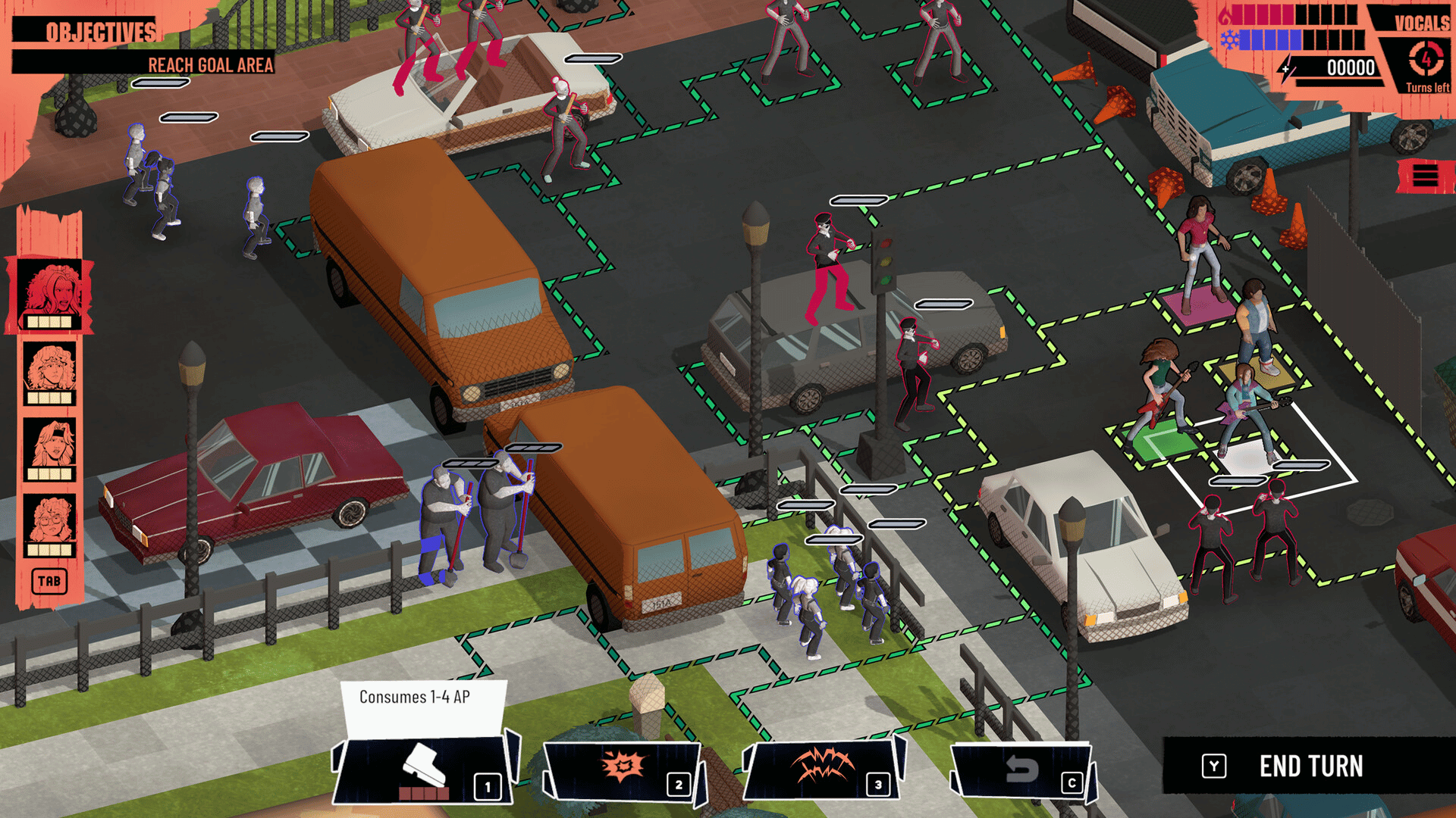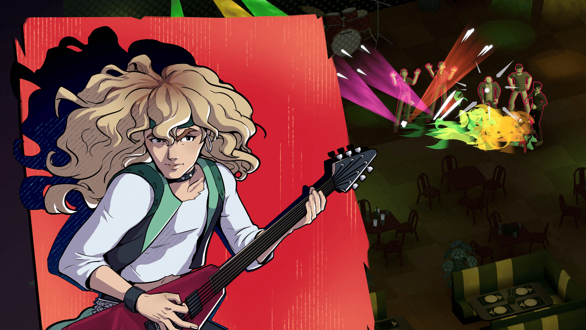 A mashup of turn-based tactics and music games. Rock on turning foes into fans while making lyrical and audio choices during battle to create your own glam metal anthems. Experience a homage to 1990s ensemble dramedies, choosing when to embrace angst or empathy.