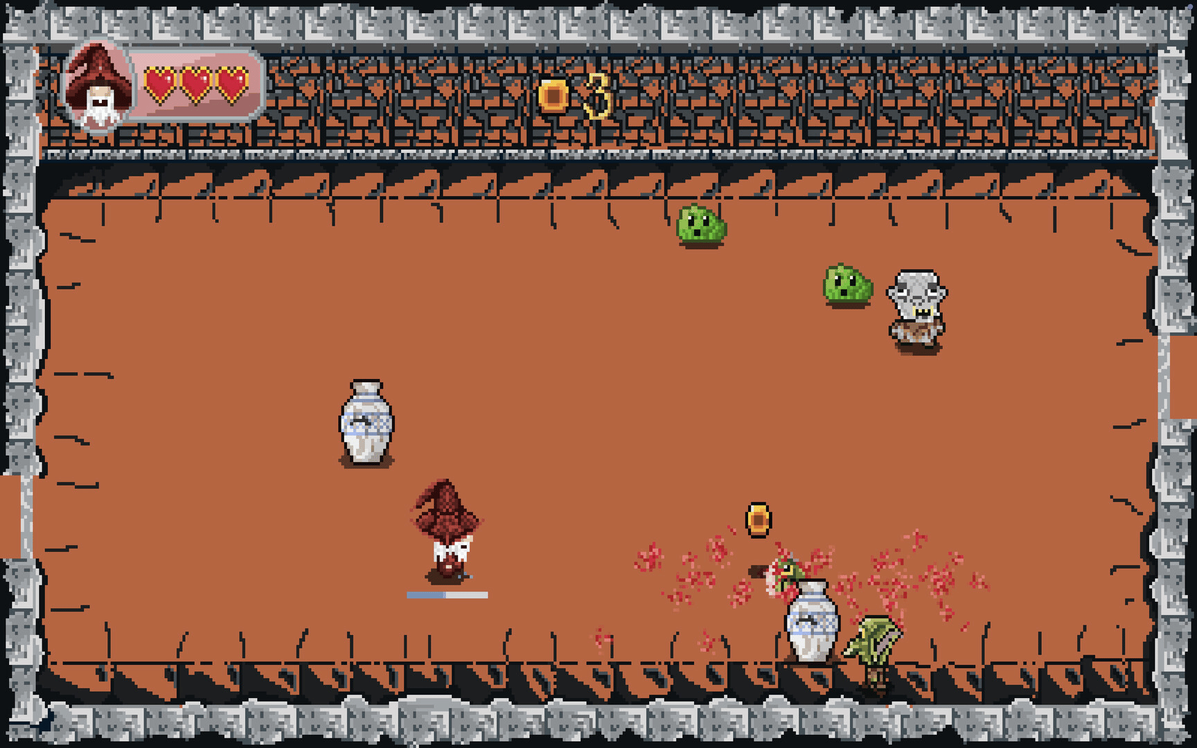 A fast-paced pixel dungeon crawler focused on score chasing. Break furniture, slay enemies, and grab as many coins as you can in rooms that constantly change colors and foes. Play alone or with a friend and settle the score with end-of-run stats.