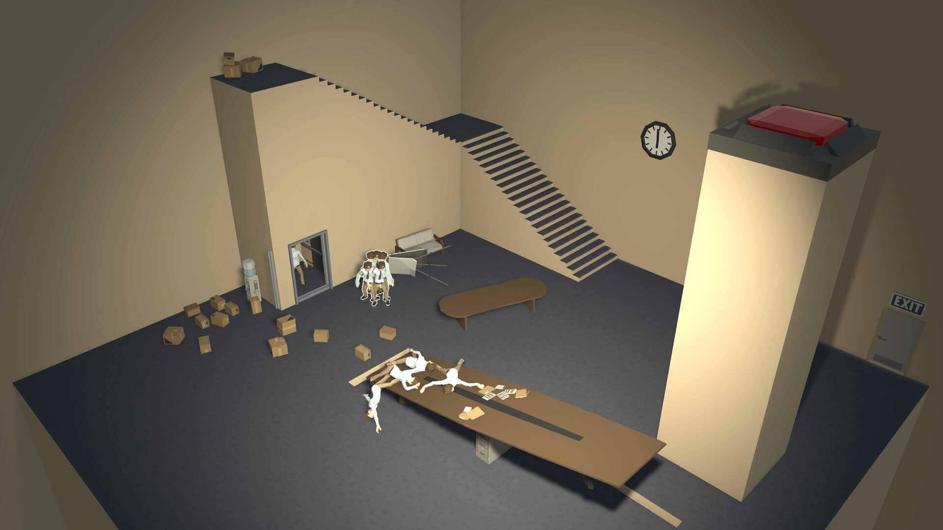 A satirical puzzle-strategy game where you command a team of office drones through absurd corporate obstacle courses while enduring constant “motivation” from your overbearing CEO.