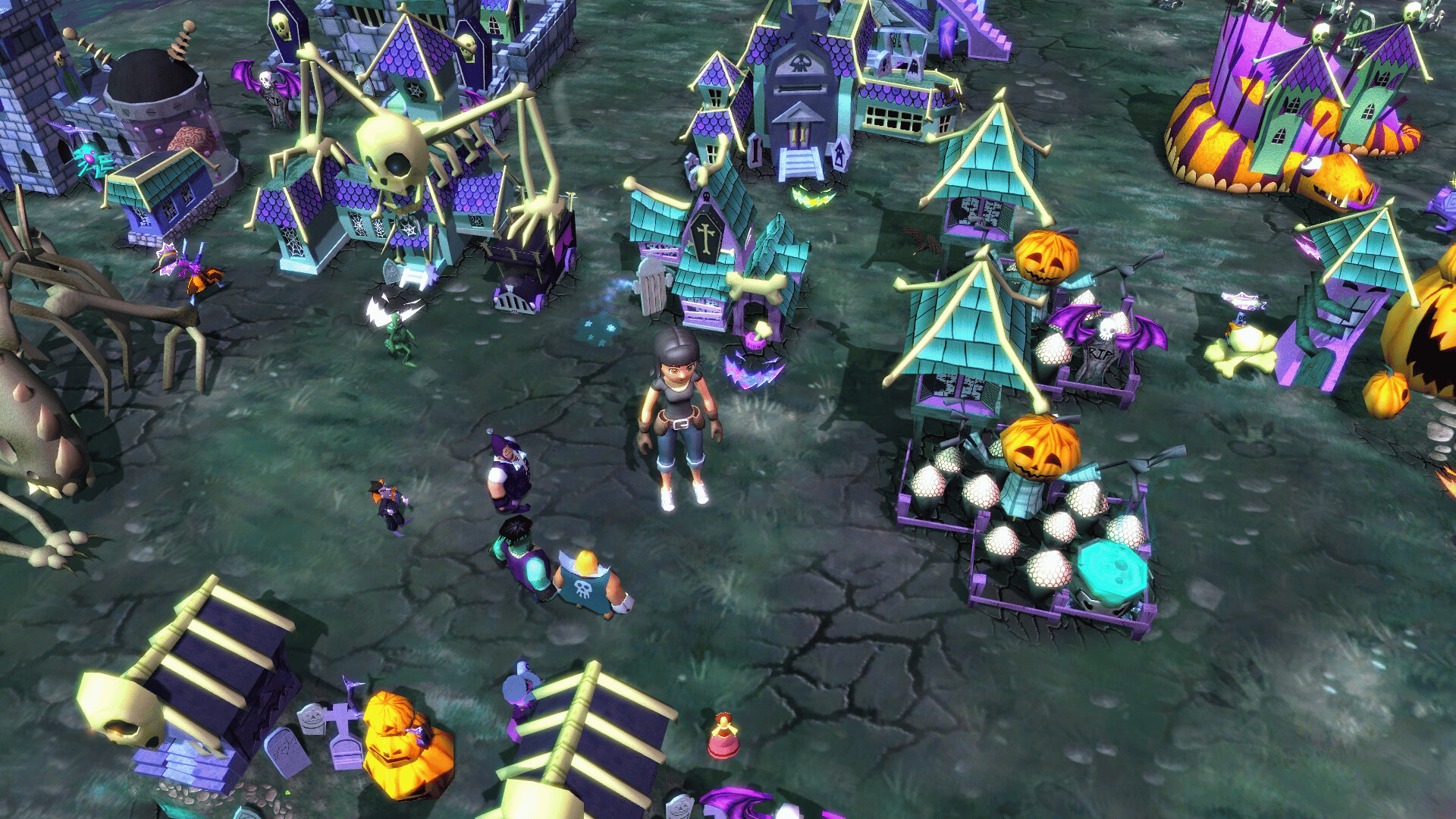 Put a horde of Spooklings to work gathering bones, brimstone and slug shampoo in this macabre night-time land! Horrifying creations await you as you build your creepy kingdom and work out how to deal with the largest, most horrifying creation of all... the Zombiesaurus!