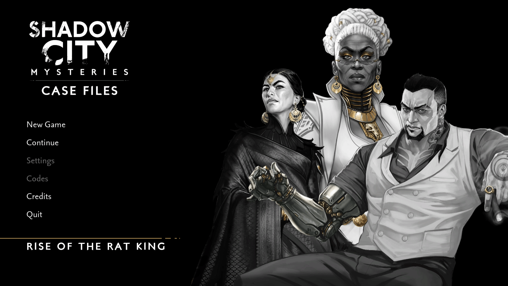 Shadow City Mysteries: Case Files – Rise of the Rat King is a narrative game set in Shadow City’s underbelly. Assume the role of the Rat King, an underworld mastermind fighting for absolute power. Shape your legend by forging alliances, crushing rivals, and leaving a trail of consequences.