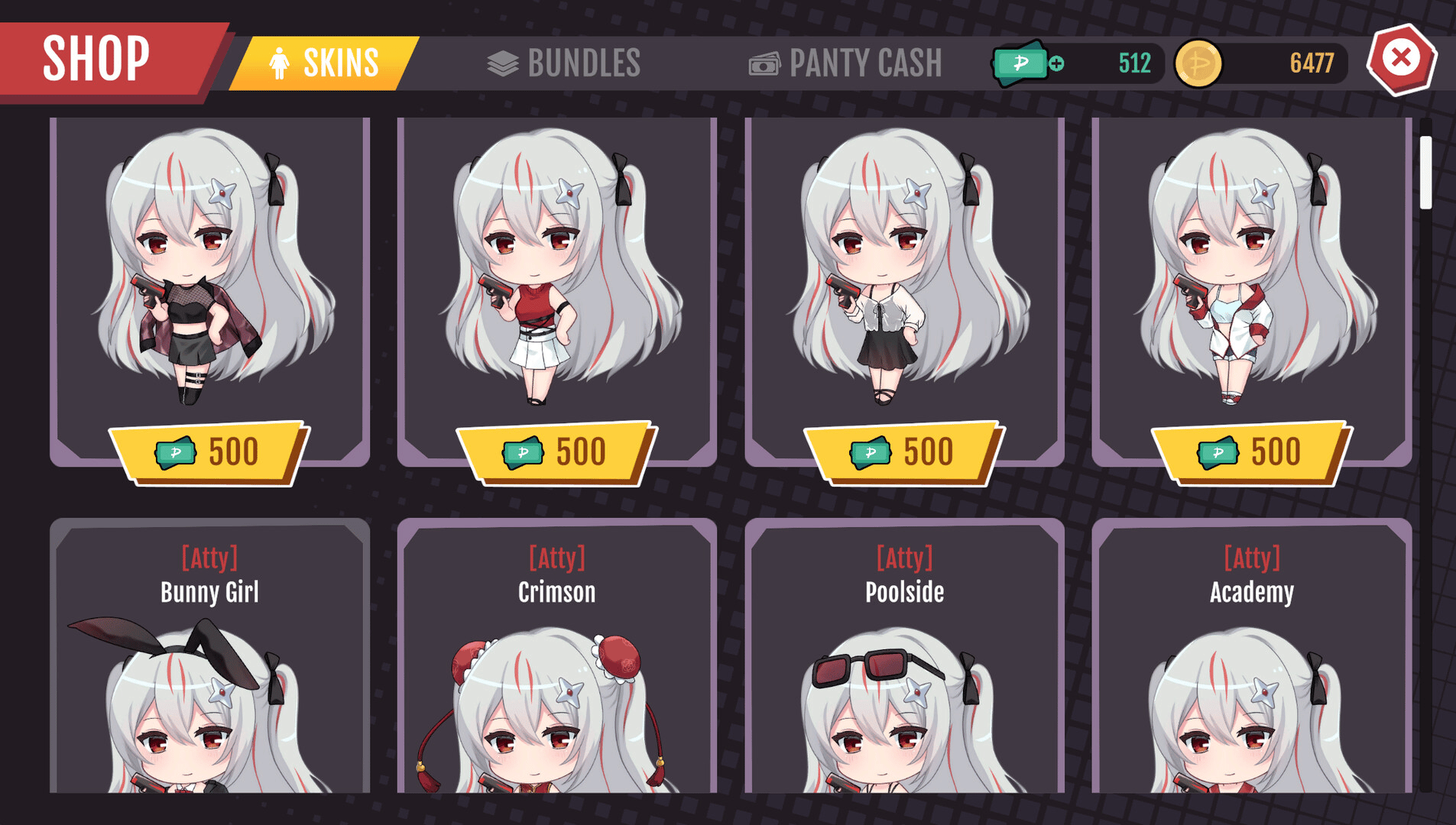 A casual anime game with mini-games to collect panties, which are used to rank up, unlock levels, and buy items to customize your own character. Lighthearted with funny descriptions.