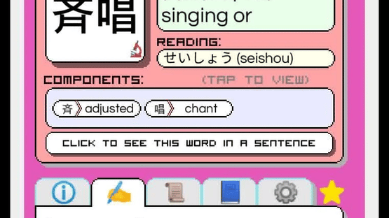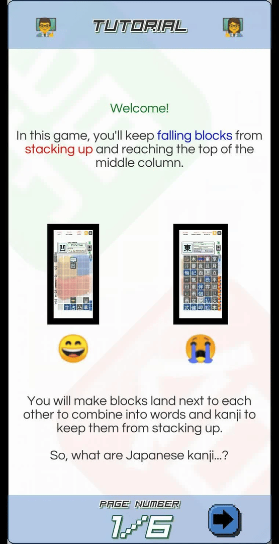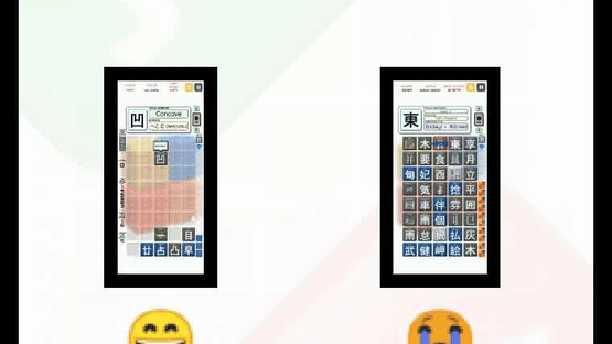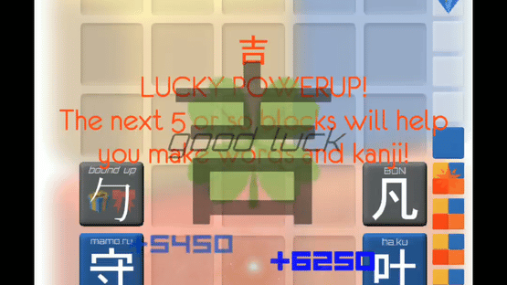 Blocks with Japanese Kanji on them fall and you try to eliminate them by forming words and and activating kanji-related powerups by combining them into more complex Kanji.